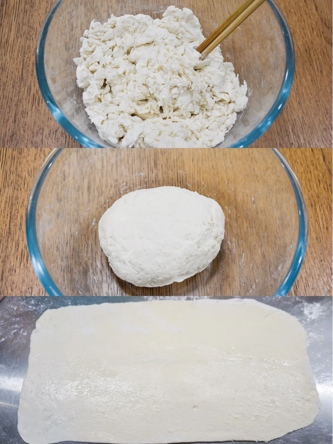 2. 揉成无干粉、稍显光滑的面团,饧10分钟;