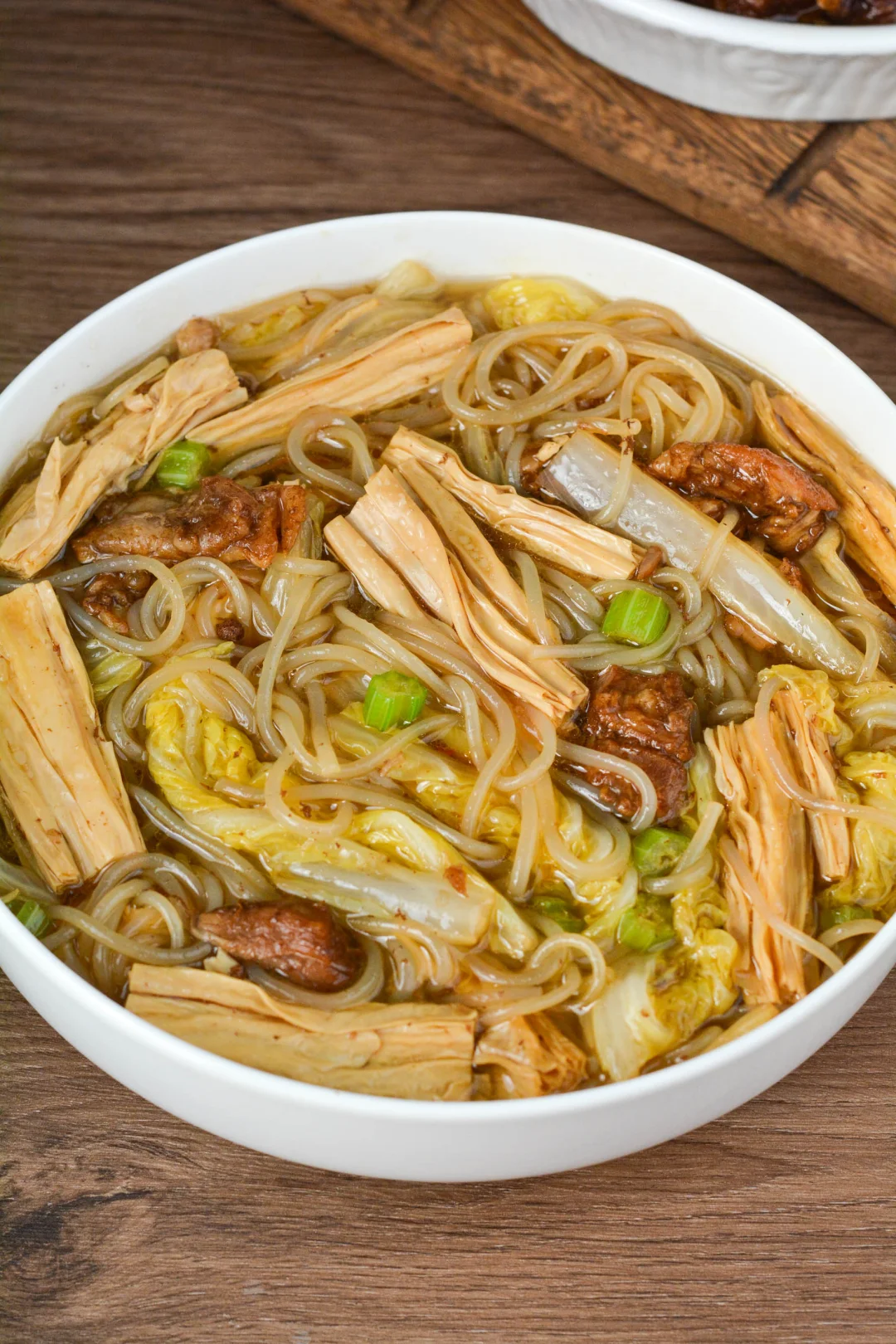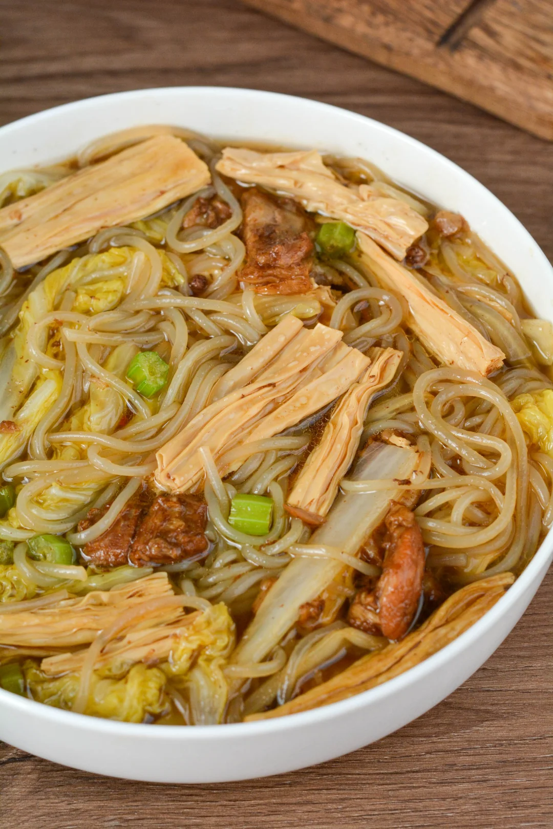 牛肉汤炖腐竹,再来一把粉条,太香了