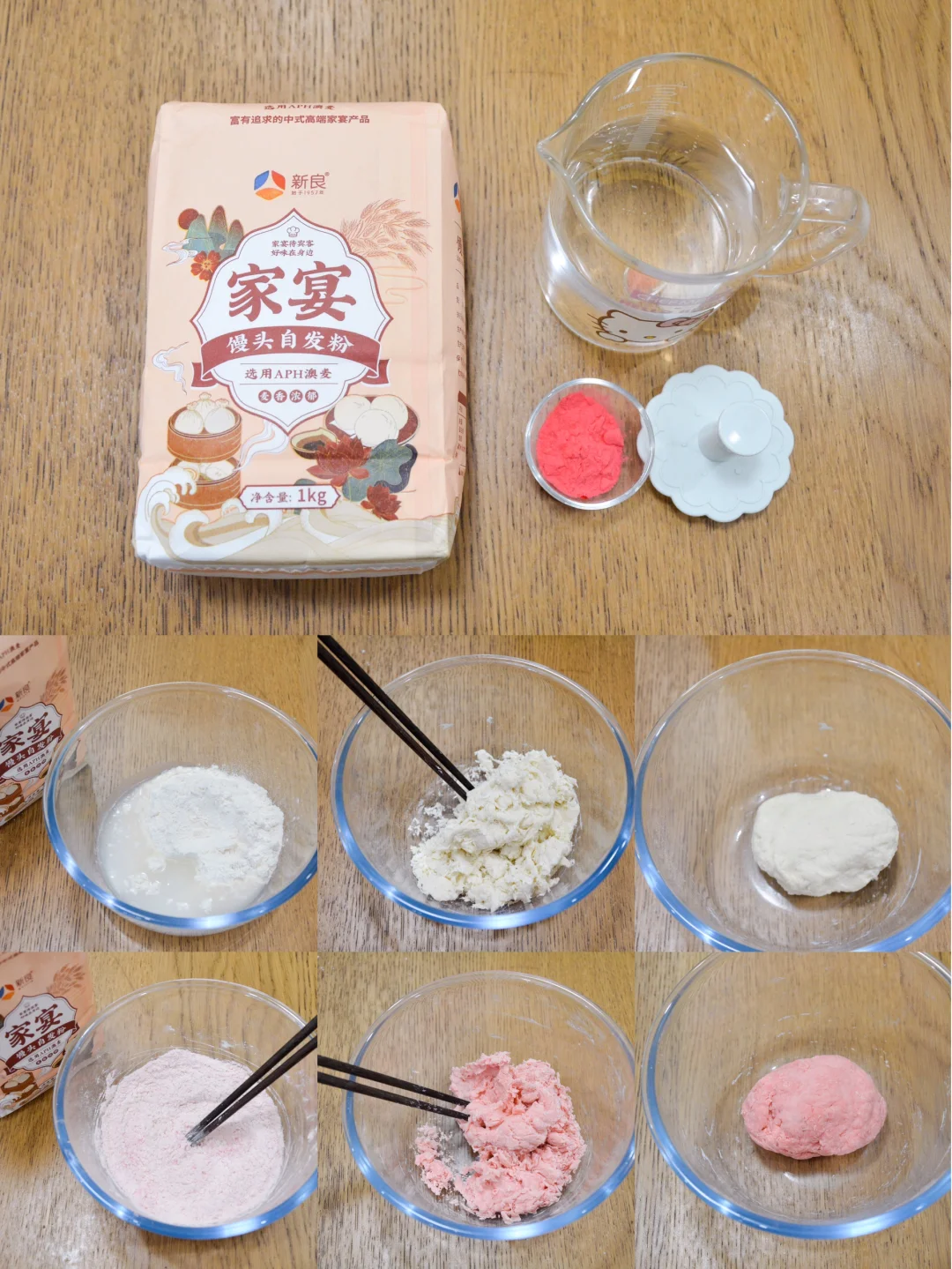 春天就要充满生机,馒头也不例外,粉嫩嫩的仿佛桃花般明媚。用新良家宴馒头自发粉,只需一次发酵,蒸出来的馒头又暄又软,外皮还油亮亮的,比传统的二次发酵要省一个钟头呢,可省心了!