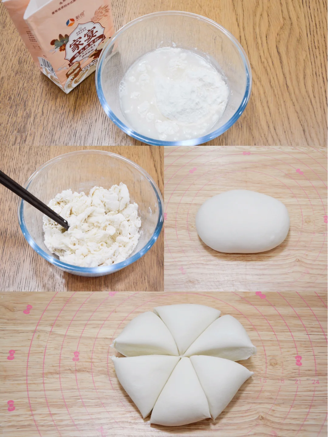 2️⃣水量是面粉量的55-65%,水少一点,馒头立体感强,口感扎实;水多一点,馒头立体感稍差,但口感更加暄软。