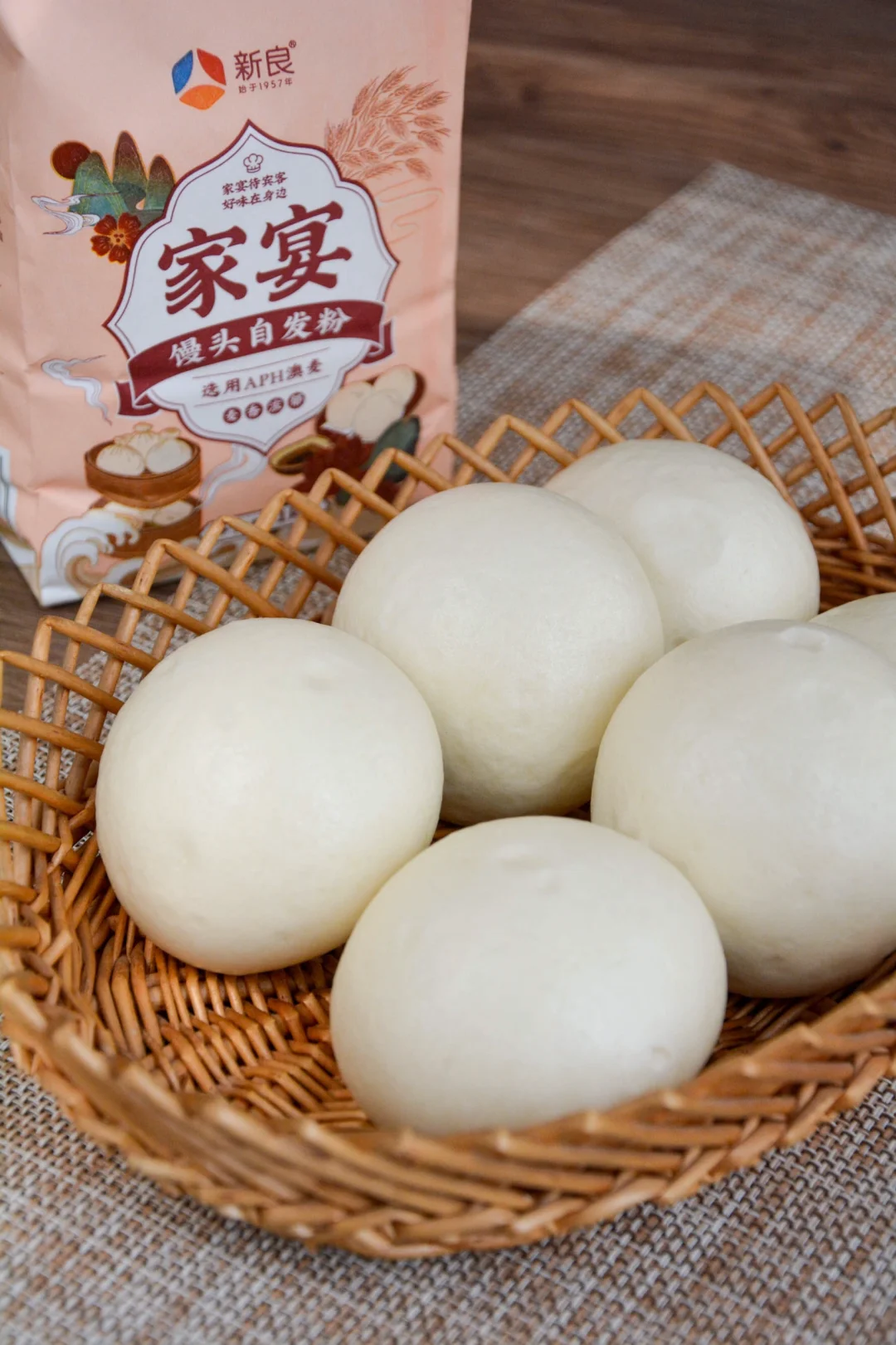 这段时间总做花样馒头,其实朴实的白馒头最香。用新良家宴馒头自发粉特方便,小白都能轻松上手做;不用额外放酵母,加水拌一拌、用手揉一揉、整形后放蒸锅里,一次发酵,就等着大白馒头出锅了。还是有点小遗憾,没整出水光肌,也不知道是焖的时候去炒了俩菜,水滴落在馒头上,还是揉得不彻底的原因。