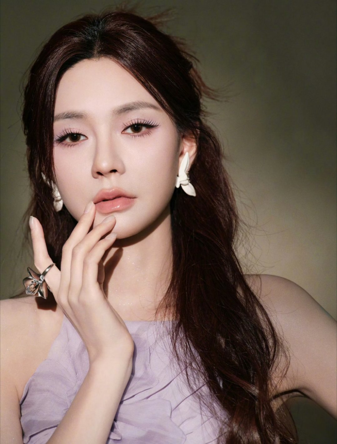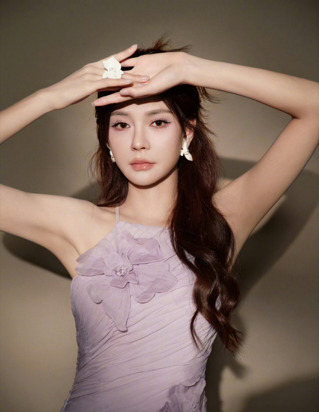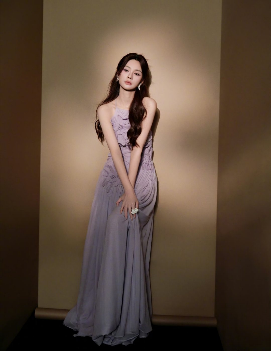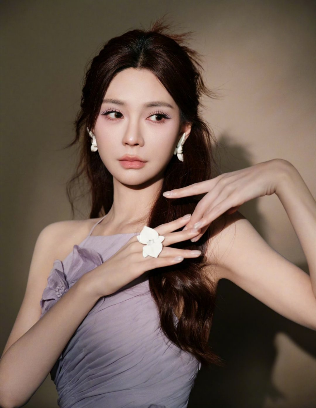 沈梦辰你真的很美昨天这条紫色裙子,搭配淡紫色背景,绝了!