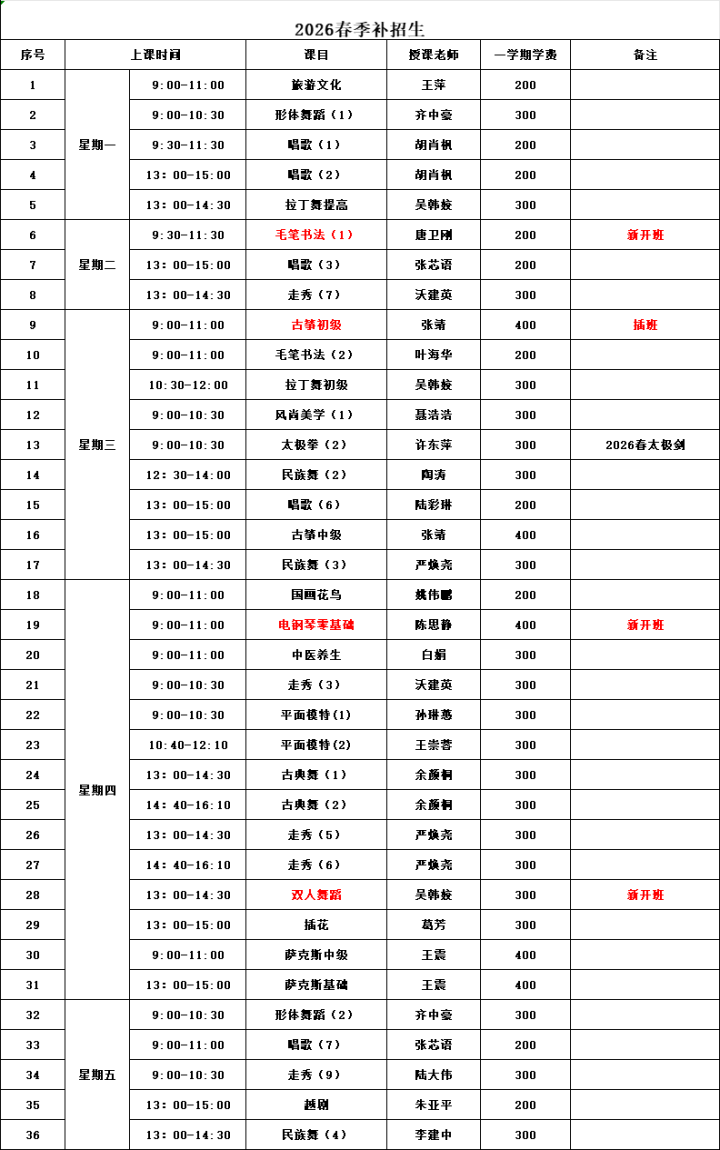 周一至周五(法定节假日除外),除运动舞蹈类课程时长1.5个小时外,其余常规课程时长均为2个小时。
