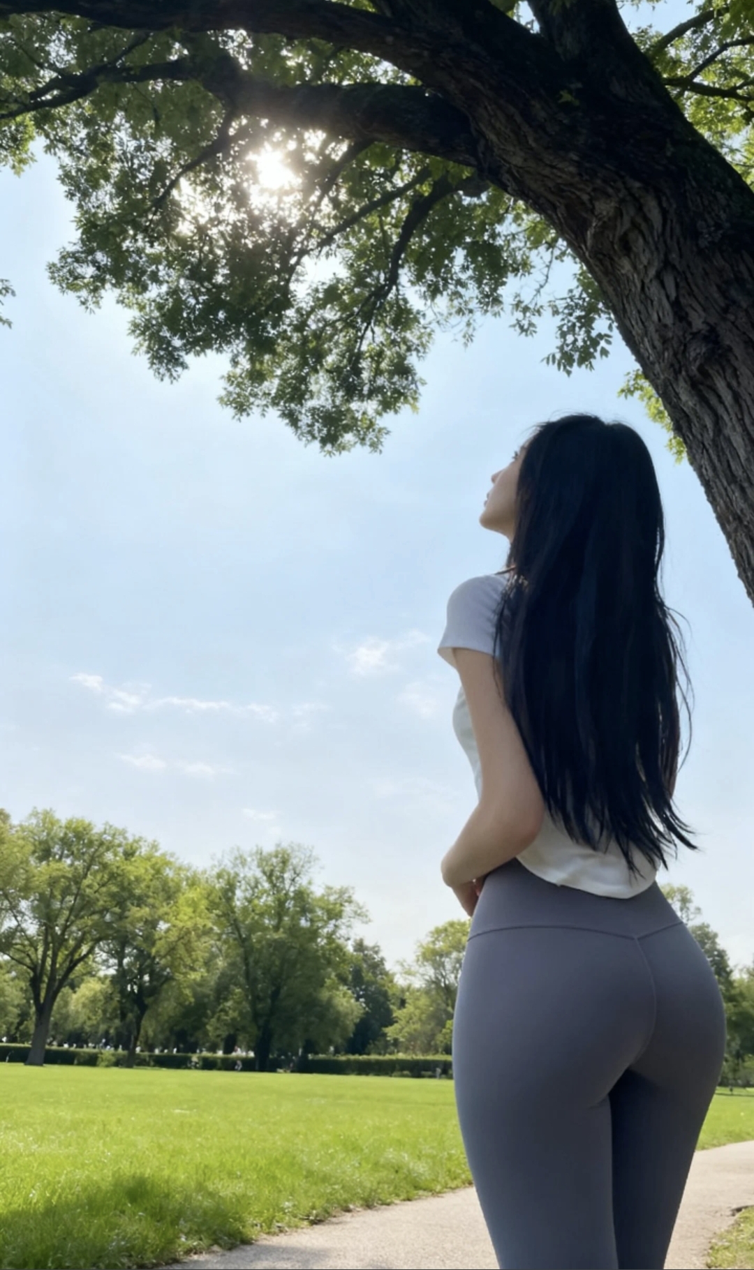 公园里的“背影杀手”,瑜伽裤穿出完美腰臀比!💜 偶遇神仙小姐姐!公...