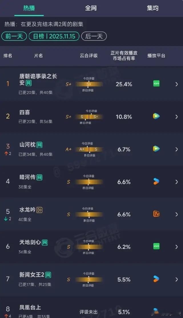 《唐朝诡实录之长安》没有大爆起来!目前剧情过半,云合占比25%左右,还没到30%,的确是没有爆出来,一直在增长,但速度有点慢,没有流量演员的剧,在热度和营销上的确很吃亏,但凡花点钱做做数据,搞点营销,也不至于以这么缓慢的速度在增长。