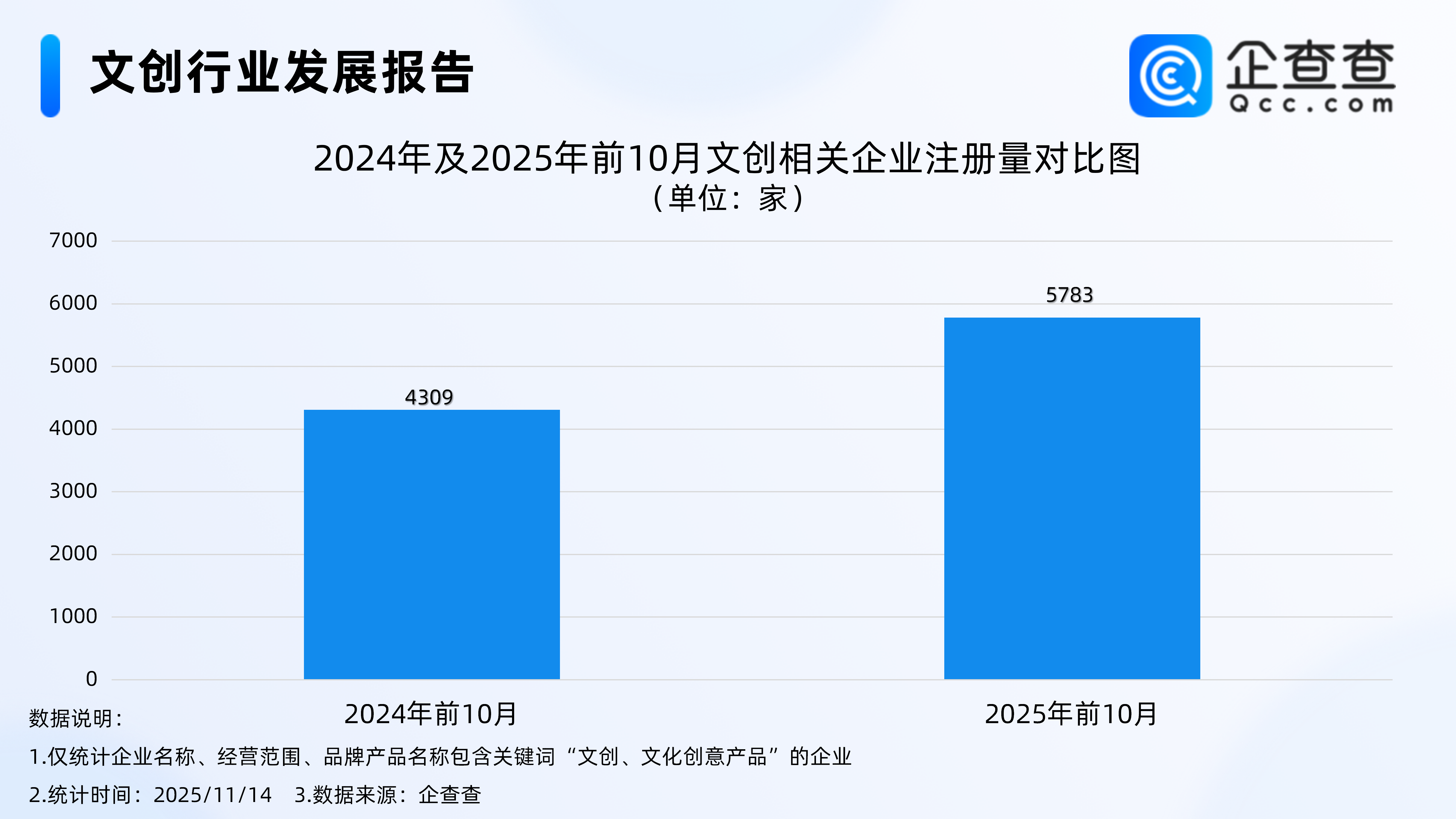 企查查数据显示,截至目前,今年已注册文创相关企业6028家,超去年全年注册水平,其中今年前10月注册5783家,同比增长34.21%。
