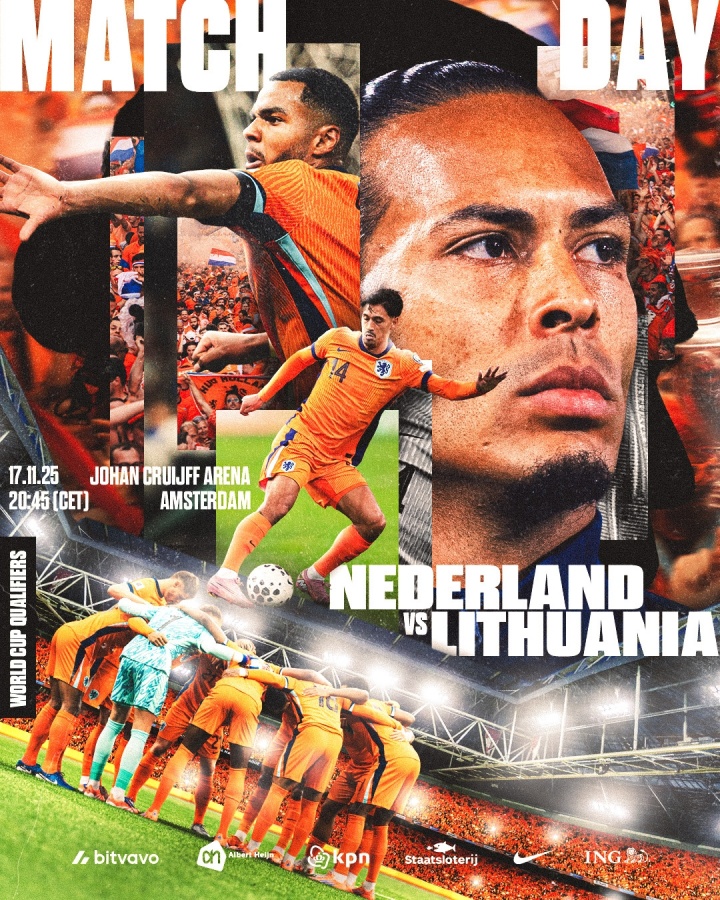 直播吧11月18日讯 世欧预G组第6轮,荷兰迎战立陶宛比赛即将打响。赛前首发出炉。本场赛前荷兰领先第二名3分,并有13个净胜球优势。