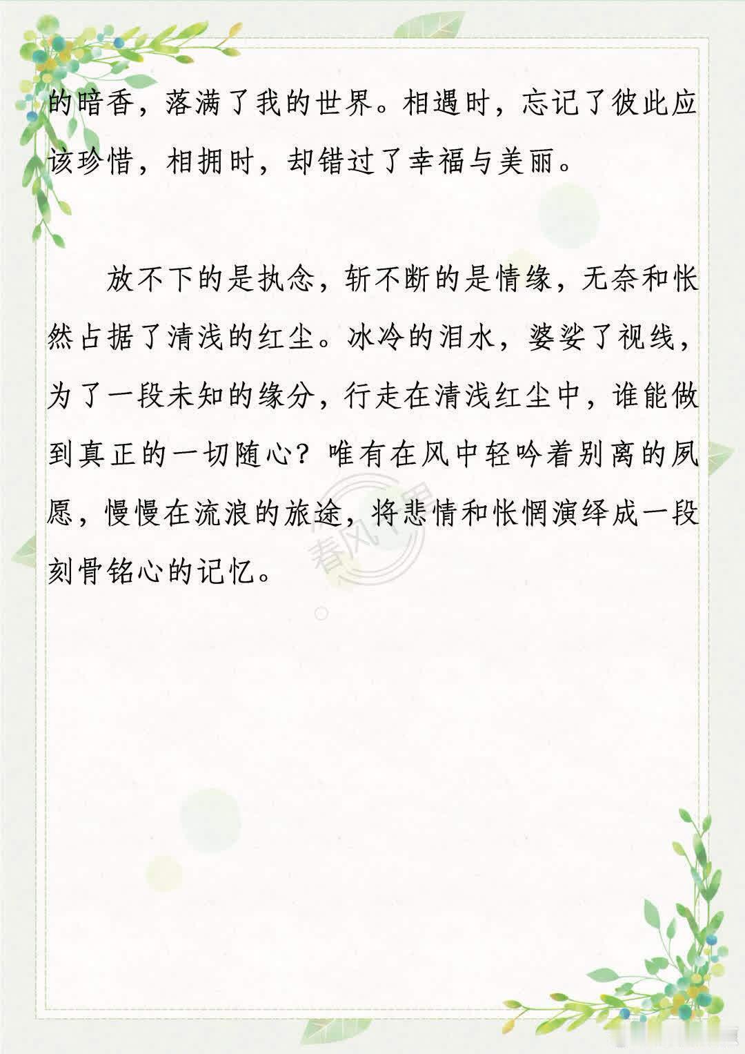 旧梦已是昨日梦,故人已是陌路人 执念是心尖的朱砂,情缘是解不开的牵挂,红尘再清浅,也藏着剪不断的牵挂。
