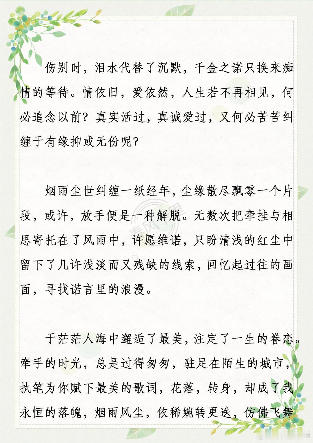 旧梦已是昨日梦,故人已是陌路人 执念是心尖的朱砂,情缘是解不开的牵挂,红尘再清浅