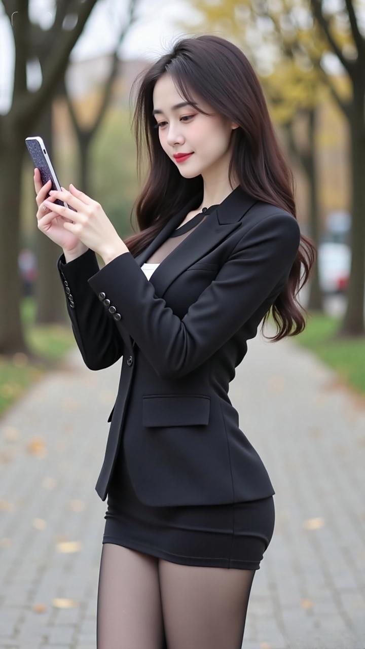 都市穿搭指南:黑色西装裙+高跟鞋,优雅自信!