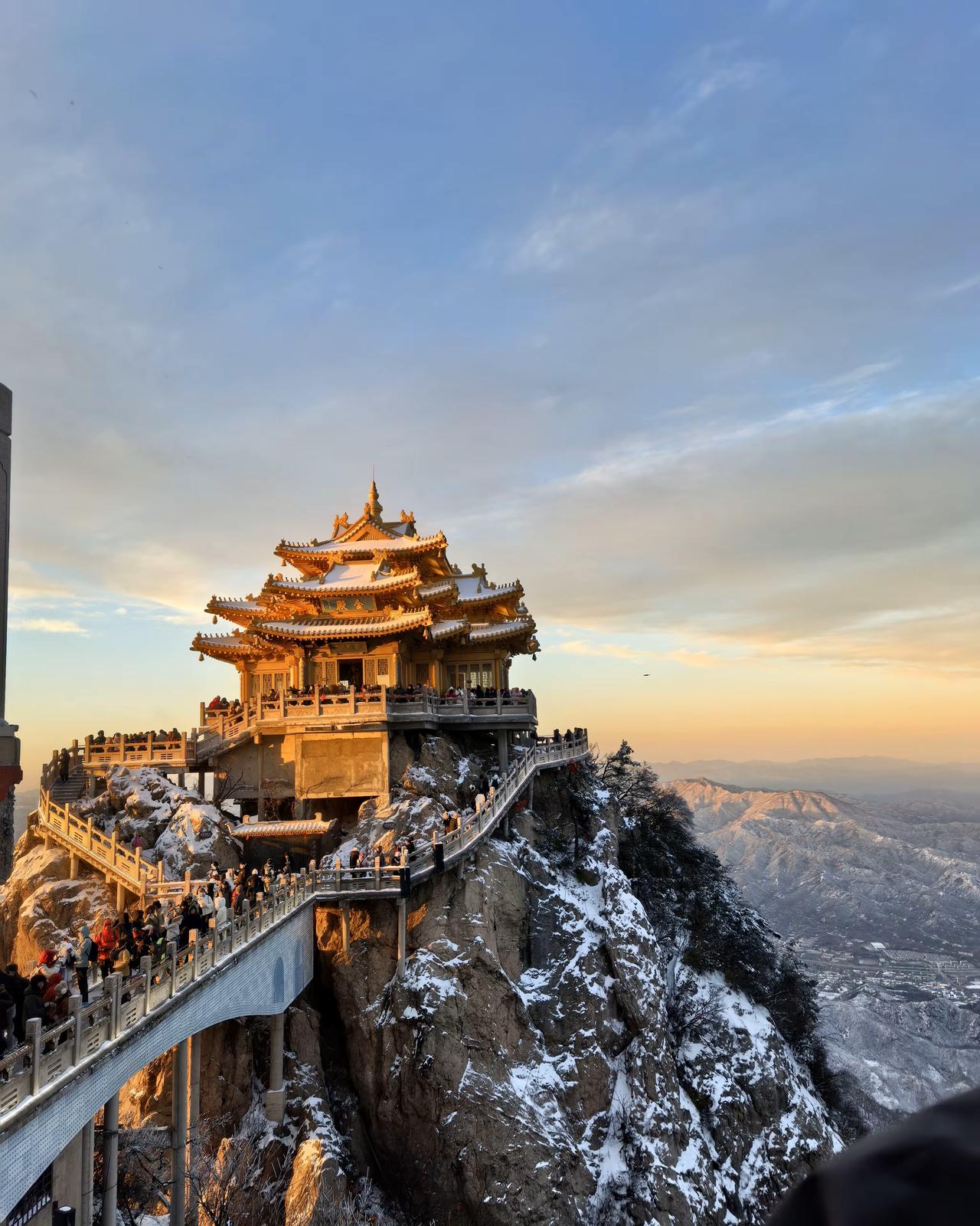 老君山的雪,才是冬天的“顶流剧本” 最近刷到老君山的雪景,终于懂了为啥大家都说“它一下雪就封神”——这哪是普通的下雪,分明是大自然给仙山开了场专属发布会。 作为中原的道教名山,老君山平时就带着股沉静的仙气,但雪一落,气质直接翻倍。前几天刷到游客拍的视频,清晨的金顶被白雪轻轻盖着,金瓦和白雪撞在一起,不刺眼却格外神圣,连飞檐上的冰棱都透着灵气。沿着十里画屏的栈道走,两边的松树裹着雪,变成了胖乎乎的“雪蘑菇”,花岗岩峰林被雪勾勒出清晰的轮廓,远看就像幅刚落笔的水墨画,风一吹,雪沫子飘起来,连空气都变得干净又清冽。 最绝的是雪后的云海,云雾在山间慢悠悠地飘,把远处的山峰遮得若隐若现,站在观景台往下看,仿佛脚下踩着祥云,真有种“误入天宫”的错觉。有游客说,爬了半小时山的疲惫,在看到雪景的那一刻全没了,连呼吸都不敢太用力,怕惊扰了这份安静。其实不用刻意找打卡点,随便站在哪个角落,随手一拍都是能当壁纸的画面,难怪网友们都喊着“今年冬天必须冲”。 老君山的雪之所以让人着迷,不光是景美,更在于它的“恰到好处”。没有北方暴雪的厚重压迫,也不像南方碎雪那样转瞬即逝,它温柔地覆盖山峦、古观,既保留了山的雄伟,又添了几分柔情。雪后的山间少了旺季的拥挤,能静下心来感受风穿过树林的声音,听道观里隐约传来的钟鸣,这种远离尘嚣的感觉,才是最难得的体验。 很多人说现在看风景都靠滤镜,但老君山的雪景根本不需要。它的美是直白又纯粹的,是白雪、云海、古建的自然交融,是走在栈道上能摸到的冰棱,是抬头就能望见的澄澈天空。这种不加修饰的震撼,只有亲眼见过才懂。 这个冬天,要是想找个地方放松心情,老君山的雪绝对值得奔赴。不用做复杂的攻略,带上保暖的衣服和防滑的鞋子,去感受一场“封神级”的雪景,让山野的风带走烦恼,让洁白的雪治愈心灵——毕竟,这样的仙境盛景,人生总该见一次。老君山 老君山旅游 老君山 洛阳老君山降雪 奇境老君山 老君山霞光仙境 老君山雪景
