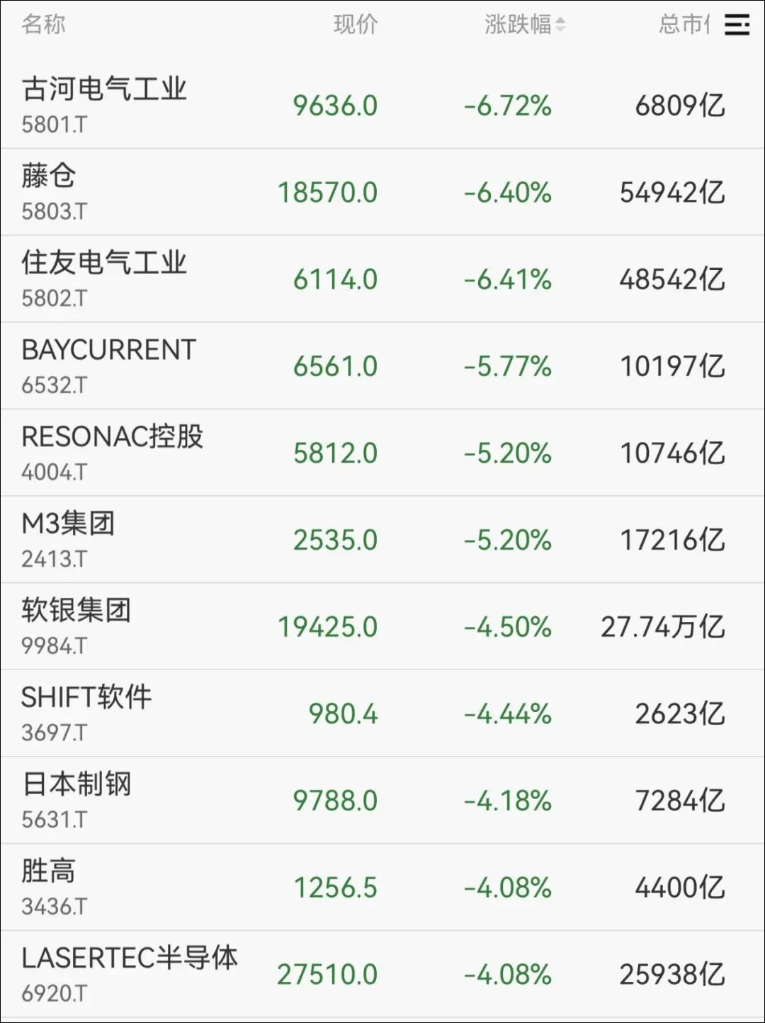 个股方面,受隔夜美股科技股走低影响,软银集团一度跌超5%,东京电子、爱德万测试、任天堂等跟跌。此外,资生堂、味之素、迅销等消费股纷纷走低。
