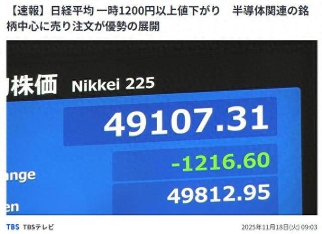 中新网11月18日电据日本TBS新闻网报道,当地时间18日上午,东京股市早盘开盘后出现暴跌,日经平均股价一度暴跌逾1200点。