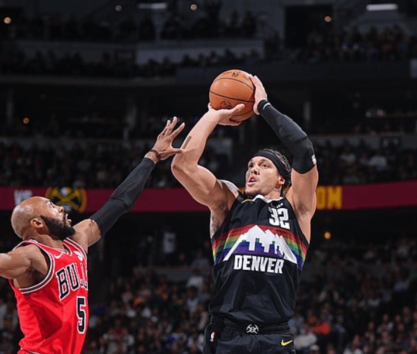 掘金球员阿龙-戈登出战32分钟,投篮18中10、三分5中1得到24分10篮板,正负值+18。