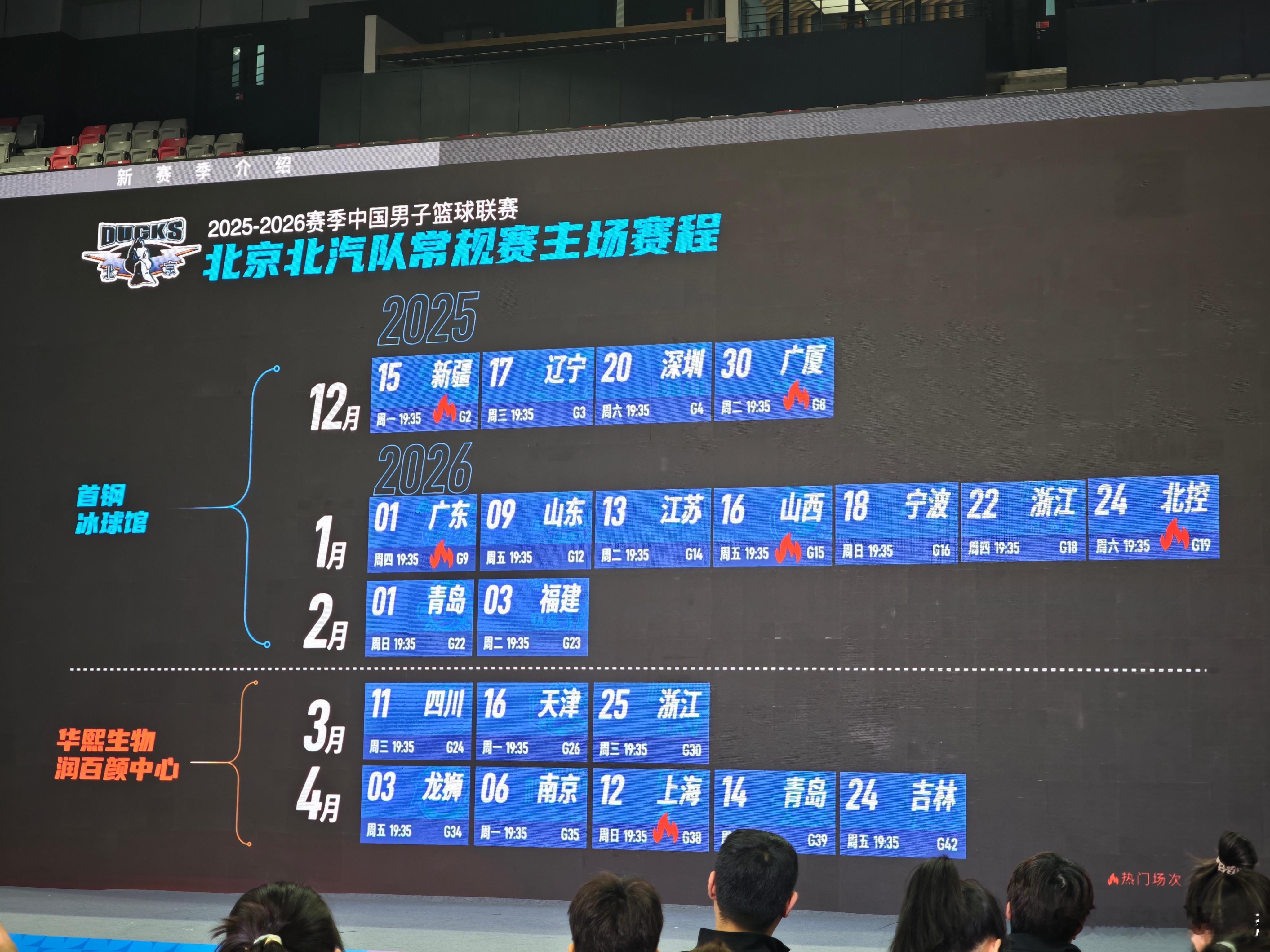 新赛季北京首钢男篮的主场将会放在首钢冰球馆和五棵松。其中,前13个主场(12月-