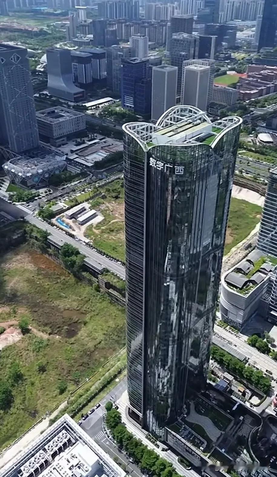 这座数字广西大厦,造型可真是别具一格呀。就这么竖在这里,你们说到底像不像英叔的电