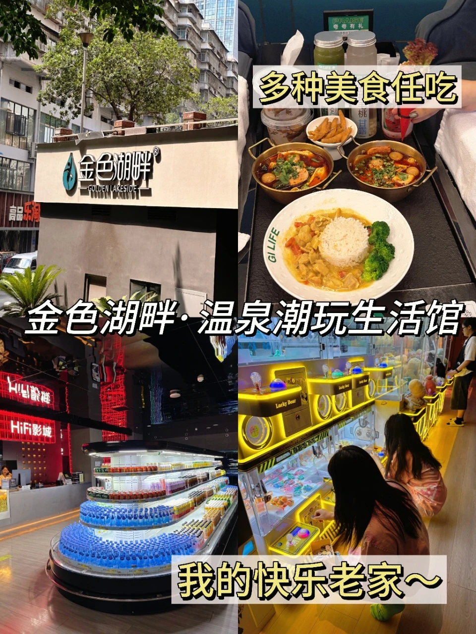 📍特色住宿:金色湖畔·温泉潮玩生活馆是很有特色的重庆住宿,空间独立私密,环境干净整洁。除了泡汤放松,还有水果、甜品自助、游戏娱乐等项目。6点前离店不收过夜费,如果想要过夜的话,第二天早餐还是五星级的自助早餐哦!而且节假日不涨价!