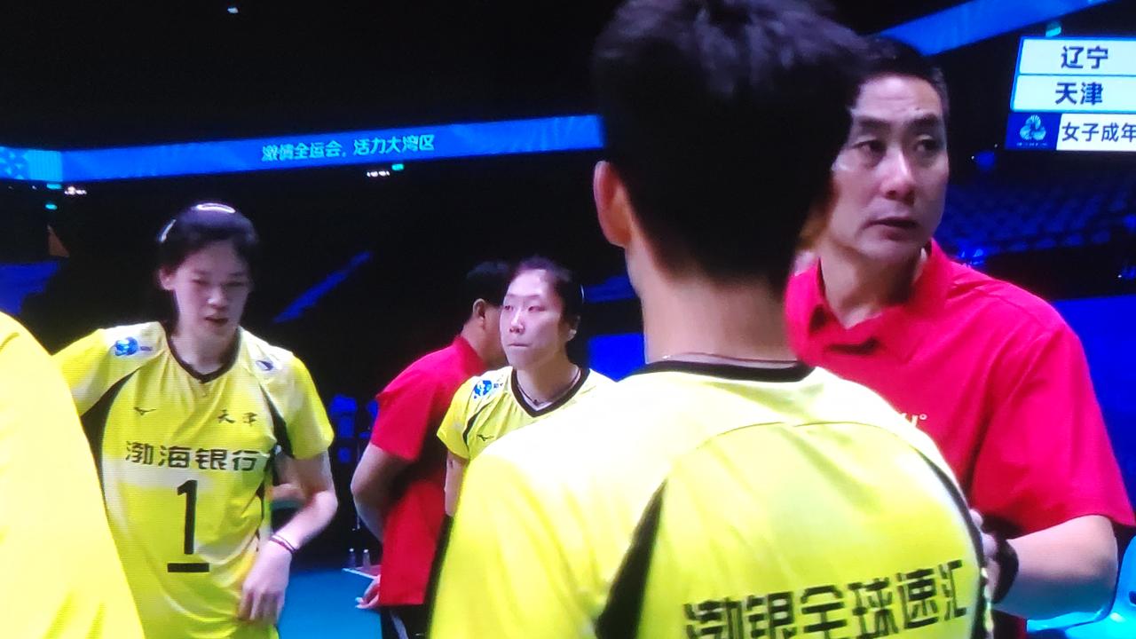 第四局比赛天津女排比分一路领先25-21!总比分天津女排3-1辽宁女排!晋级5-6名决赛! 辽宁女排的国家队主教练赵勇教练,本届全运会也是太难了,带领辽宁女排艰难进入八强赛,1/4决赛又不敌江苏女排,国家队主教练被国家队队员打败! 今天5-8名排位赛,辽宁女排的主教练赵勇教练跟天津女排的主教练陈方教练,可谓是难兄难弟了! 一个是国家队主教练,一个是卫冕冠军的主教练,都被挡在全运会四强之外。一个是外部因素,一个是内部因素。 老牌劲旅重铸辉煌,都是任重而道远!