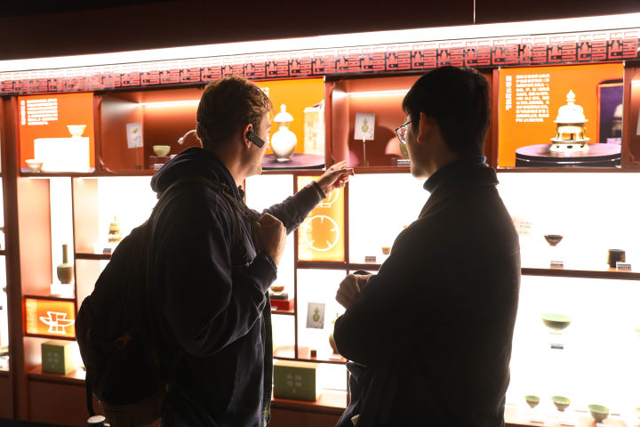 来自英国的研一留学生WilliamOliviero同样对秘色瓷青睐有加:“在燕京学堂学业主任陆扬的详尽讲解中,我了解到吴越文化博物馆展出了那么多保存完好的金银水晶器文物,但我最喜欢的还是秘色瓷,它们色彩独特、设计和工艺水平都十分高,令人叹为观止!对我来说,这些文物真正体现了中国传统文化的连续性和独特性,让我欣赏到了中国5000年历史中的美。”