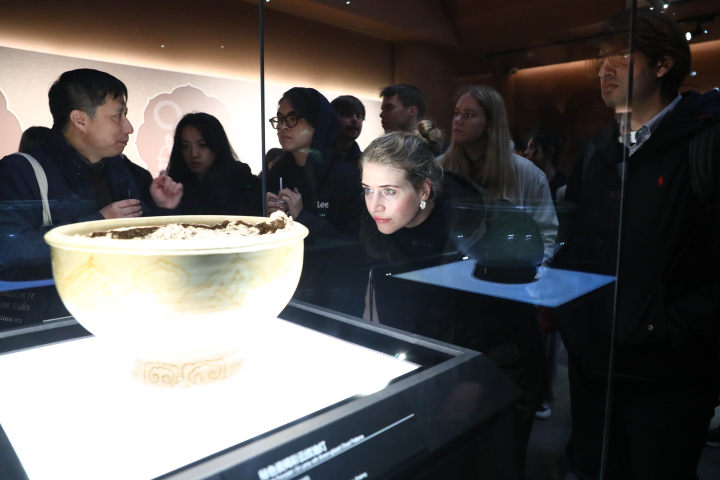 “这包括了政治、经济、文化、天文等不同领域的发展,今天看到了吴越文化中的文物精品秘色瓷,它的制作工艺也很独特,一旦钵匣出了状况,还可能‘退化’成普通越窑……”她还对吴越国期间建造的佛教文化遗址包括功臣塔、雷峰塔、保俶塔以及西湖群山的摩崖石刻表现出浓厚兴趣,表示接下去有机会将前往零距离观摩。