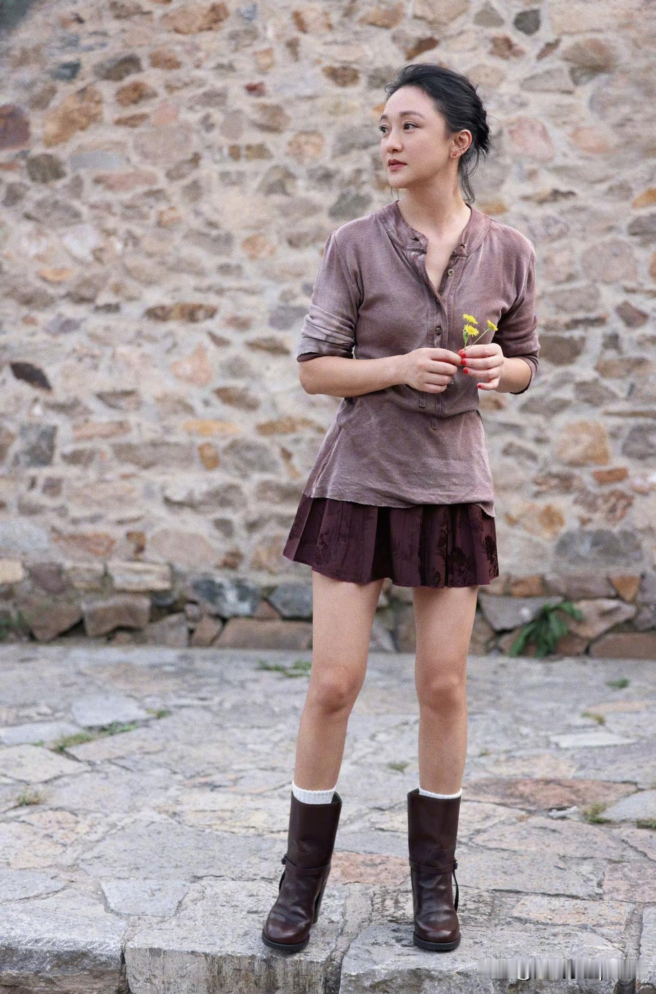 周迅就算年纪上来了还是很有灵气的! 她就这样简单穿着紫色系,还有同色系靴子,真的