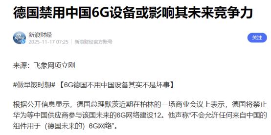 彻底决裂了! 德国总理默茨近日公开表示,绝不会允许由中方生产的组件进入德国未来的6G网络建设中来。   默茨在会上说得一点都不含糊,没给后续解释留任何余地,她甚至直接点了华为、中兴这些中方供应商的名,说要把它们彻底排除在6G建设之外。   熟悉德国电信政策的人都清楚,这不是临时起意的突发决定,而是德国憋了好久的战略延续。   早在2024年7月,德国政府就已经放出风声,要求国内运营商在2026年底前把5G核心网络里的中国设备全清出去,到2029年底前,连通信塔、传输线路、天线这些外围设备也得全部换成非中企的产品。   跟这个表态配套的,是德国早就铺开的“去中国化”布局。默茨在同一场合还强调,德国政府会把人工智能、量子科技、微电子、生物技术当成未来创新政策的核心,要把所有资源都砸到这些领域里,提升竞争力,绝不能让中国在这些赛道上抢了先。   他还专门给欧盟提建议,说“不能让美国和中国说了算技术的未来”,因为这直接关系到欧洲能不能保持繁荣,能不能守住安全和自由。   为了撑起这个宏大的“自主计划”,默茨特意提了要和法国总统马克龙一起开“数字主权峰会”,商量着怎么联手摆脱对中美科技巨头的依赖,摆出要走“欧洲第三条路”的架势。这个看着挺有志气的战略规划,背后藏着德国乃至整个欧洲的深层焦虑。   这些年,从亚洲的芯片到美国的人工智能,再到云服务领域,欧洲在关键科技领域的话语权越来越小。有数据摆在那,欧洲5G基站里近三分之一都是中国产的,人工智能领域中美企业占了七成以上的市场份额,量子计算的核心专利也大多攥在中美手里,这种“技术上被卡脖子”的现状,让欧盟坐不住了。   作为欧洲经济的“发动机”,德国自然把数字主权当成了必须守住的底线,想借着法德联手在6G这种未来赛道上抢回主动权。可理想和现实之间的差距,比莱茵河还宽。   默茨的话刚落地,德国国内的质疑声就没断过,最直接的就是巨额成本带来的压力。   巴克莱银行算过一笔直观的账,单是把现有的华为设备换掉,直接开销就高达25亿欧元,折合成人民币快200亿了,这个数字相当于德国一年基础设施预算的12%。   分摊到具体运营商身上,压力更明显,德国电信要独自扛11亿欧元,沃达丰和西班牙电信各要掏约7亿欧元,其中德国电信这笔钱,就占了它去年本土资本支出的23%。这还只是看得见的硬件更换费,工程停机造成的损失、新设备调试的技术成本、人员培训的开支,全都没算进去。   英国当年禁用华为的教训就摆在那,英国不仅多花了31亿美元,5G建设进度还直接慢了2到3年,而德国要替换的规模是英国的3倍,延误的风险只会更高。   更让德国政府头疼的是钱从哪来,默茨政府计划从国防和基础设施专项资金里挪钱补贴运营商,这种用全民税收填通信领域“政治窟窿”的做法,已经惹得国内民众不满,不少人质疑“这些钱花得值吗”。   比花钱更麻烦的是技术上的深度绑定。丹麦Strand咨询公司有组数据说得很清楚,2024年华为在德国5G无线接入网的市场占比高达59%,远超欧洲平均水平。   德国境内8.2万个移动通信站里,一半都装了华为的技术,其中德国电信三分之二的无线接入网、沃达丰55%的无线接入网,都是华为在撑着。   这种程度的绑定,不是简单“拆了换了”就能解决的,不同厂商的设备兼容性、网络频段适配都得重新调试,稍微出点错就可能导致一片区域通信中断。德国电信CEO霍特格斯早就公开吐槽过:“无线接入网根本不算关键设施,强行替换纯粹是给自己找罪受。”   更有意思的是,默茨一边喊着6G不让中国组件进,一边自己也承认,中国是德国第二大贸易伙伴,两国经济早就绑在一起,想完全拆开根本不现实。这话直接戳破了德国“技术脱钩+经济挂钩”这套双重分化策略的虚幻。   一边在通信技术领域把中方往外推,怕中国占了上风;另一边又舍不得中国市场,还在积极筹备中德高级别财金对话,这种“既要又要”的心态,让德国的战略看着特别矛盾。