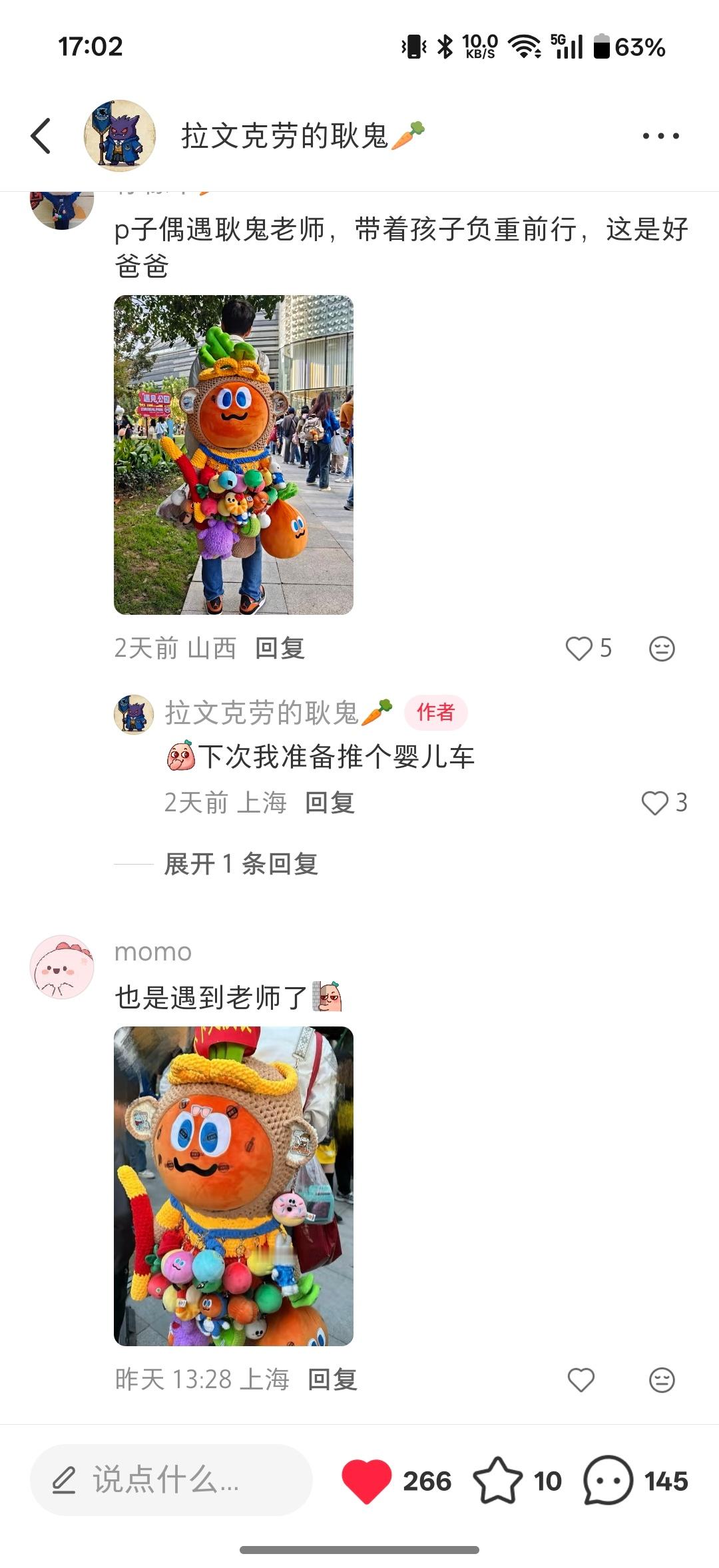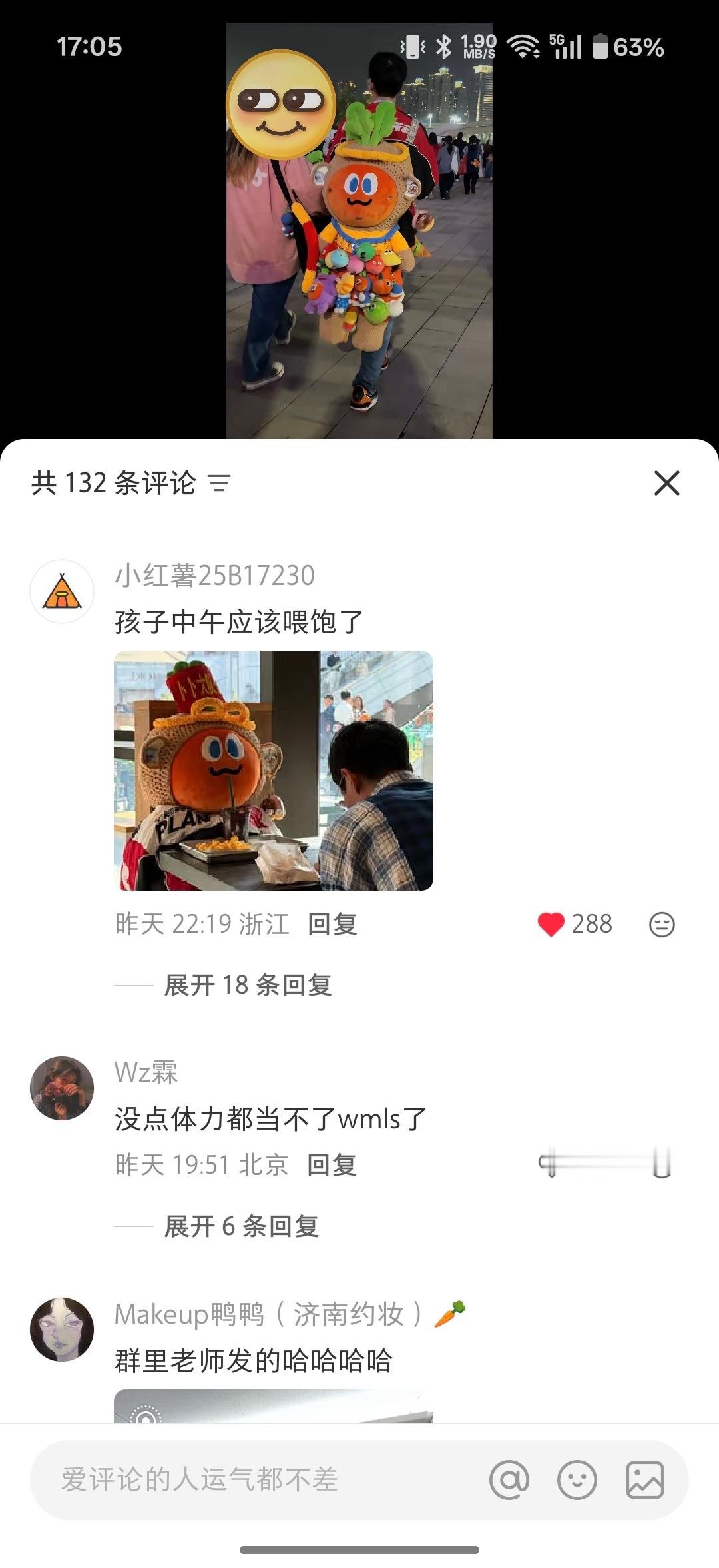 工作室同事周末去上海看五月天演唱会,结果在小红书上火了,好几个同事不是五月天粉丝也刷到他了这哥们平时就会在包上挂一大堆玩偶,这次去上海更夸张,直接背了个巨大的萝卜孙悟空
