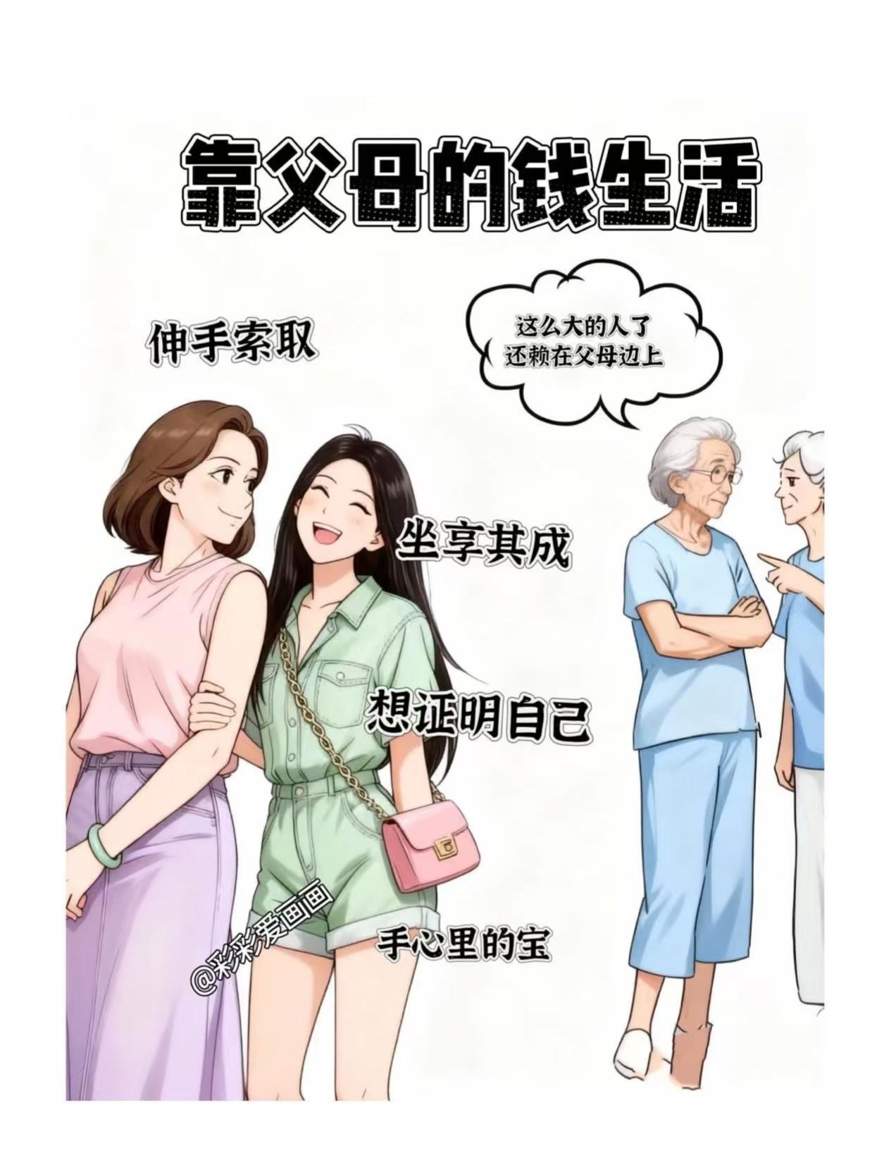 同样都是花爸妈的钱, 富人叫传承, 中产叫托举, 穷人叫啃老。 这看似简单的三种定义,却道尽了生活百态与现实的残酷。 富人的传承,像是站在巨人肩膀上的接力。他们拿着父母的钱,去投资顶尖学府的教育资源,结交各界精英,轻松地进入家族企业的高层,将财富与影响力不断扩大。他们的每一步都像是被精心规划好的,在广阔的舞台上尽情施展拳脚,传承的不仅是金钱,更是一种生活方式和社会地位。 中产的托举,是父母用大半辈子的积蓄,为孩子铺就一条向上的路。孩子拿着这笔钱,努力地在学业上拼搏,期望能考上好大学,找到一份安稳的工作,实现阶层的跨越。父母的付出就像一股向上的力量,托举着孩子,让他们有机会看到更广阔的世界。然而,这一路上也充满了压力和挑战,孩子稍有不慎,就可能让家庭的努力付诸东流。 穷人的啃老,更多的是无奈与心酸。在资源匮乏的环境下,年轻人可能因为教育机会的缺失、就业市场的残酷,不得不依靠父母微薄的收入维持生计。他们不是不想独立,而是现实的困境让他们难以迈出那一步。每花一分父母的钱,心里都充满了愧疚,但又不得不为了生存而继续。 其实,无论是传承、托举还是所谓的啃老,背后都是父母对孩子深深的爱。只是不同的经济状况,让这份爱有了不同的表现形式。我们应该多一些理解和包容,少一些片面的评判,因为每个家庭都在为了更好的生活而努力。