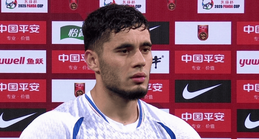 虎扑11月18日讯熊猫杯国际邀请赛,U22中国0-0乌兹别克斯坦U22,赛后乌兹别克斯坦U22球员海鲁拉耶夫-拉夫尚接受媒体采访。