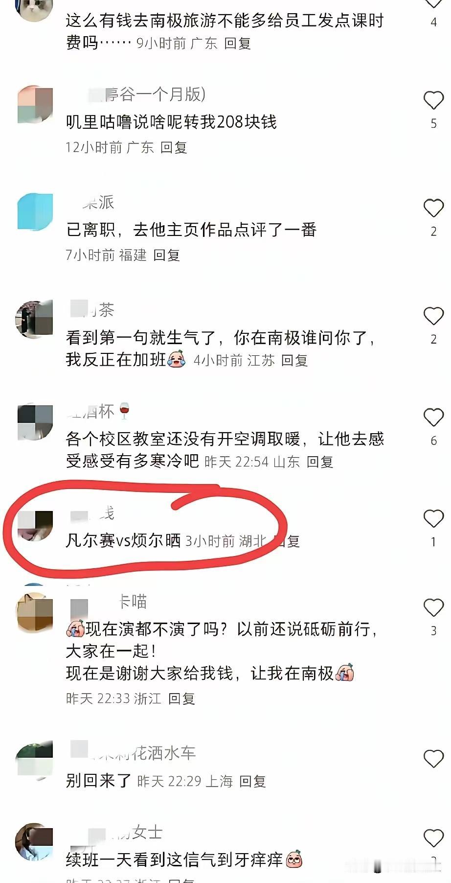董宇辉有次在节目里对于老俞的评价很到位:老俞是个很好的服务者,不是很好的管理者。 老俞是想炫一下自己的南极行小作文,结果成了凡尔赛。没有大家伙的拼命干,哪有精力去享受生活,感悟人生呢。 我当对一些工作有问题的官员总结过一句话,这句话用在职场上就脱离基层,在当内叫脱离人民群众。 只要工资给够,管老板去哪儿旅游,工资不给够就算老板天天和你一起有什么用。 大家都喷他,我也觉得他有有钱人的嘴脸,但是比起那些阴暗角落里偷偷捞钱的有钱人,他还敢直面大众,人品比其他富豪好。 有人说:吃肉的人向吃不上肉的吧唧嘴,吃不上肉的还要继续给他当苦力添肉。 老俞说句实话境界真的太低了,你出去玩就玩,财务自由随便玩。但是你又要炫耀,又当又立,还要教育人,大家就反感了。 有一说一,新东方的老师教学生确实可以,东方甄选的自营品也买的放心。 老板和员工永远不可能对等,这人是越老越糊涂,也可以说有钱人钱越多越忘本,小董还是很懂人心险恶的。 武汉有句老话:阴到吃,躲到玩,希望有钱人能懂这个世俗的哲理。