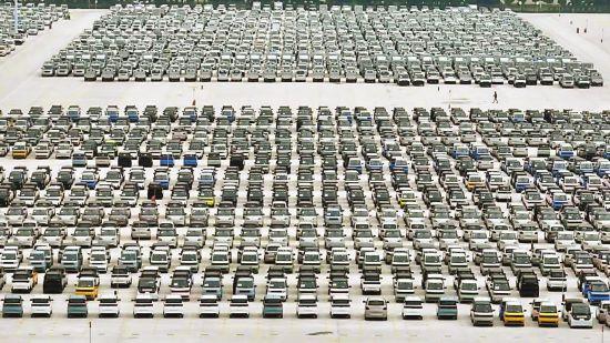 从昆明桃花村物流基地铁路专用线卸下的商品小汽车。本报通讯员陈畅摄
