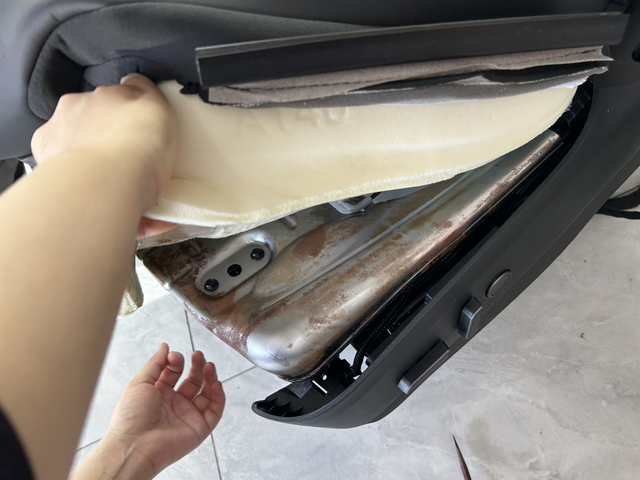 特斯拉MY座椅生锈 在安装座椅通风时候发现座椅大面积生锈。预约了售后,要求到店检