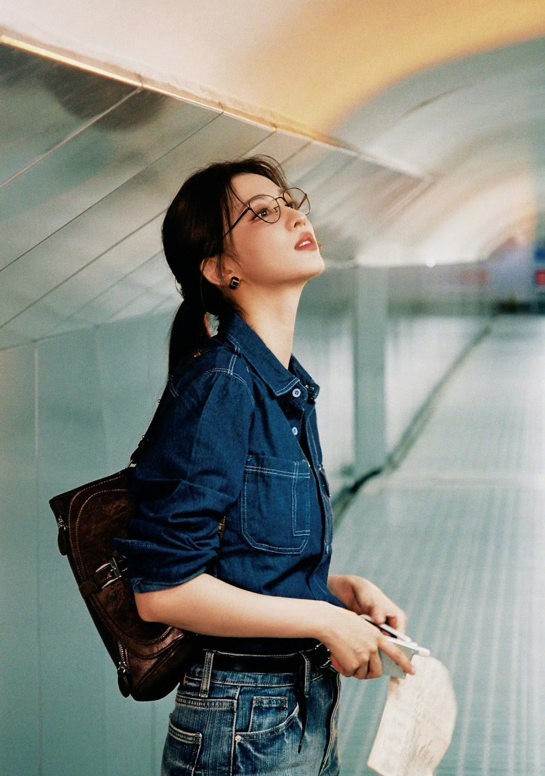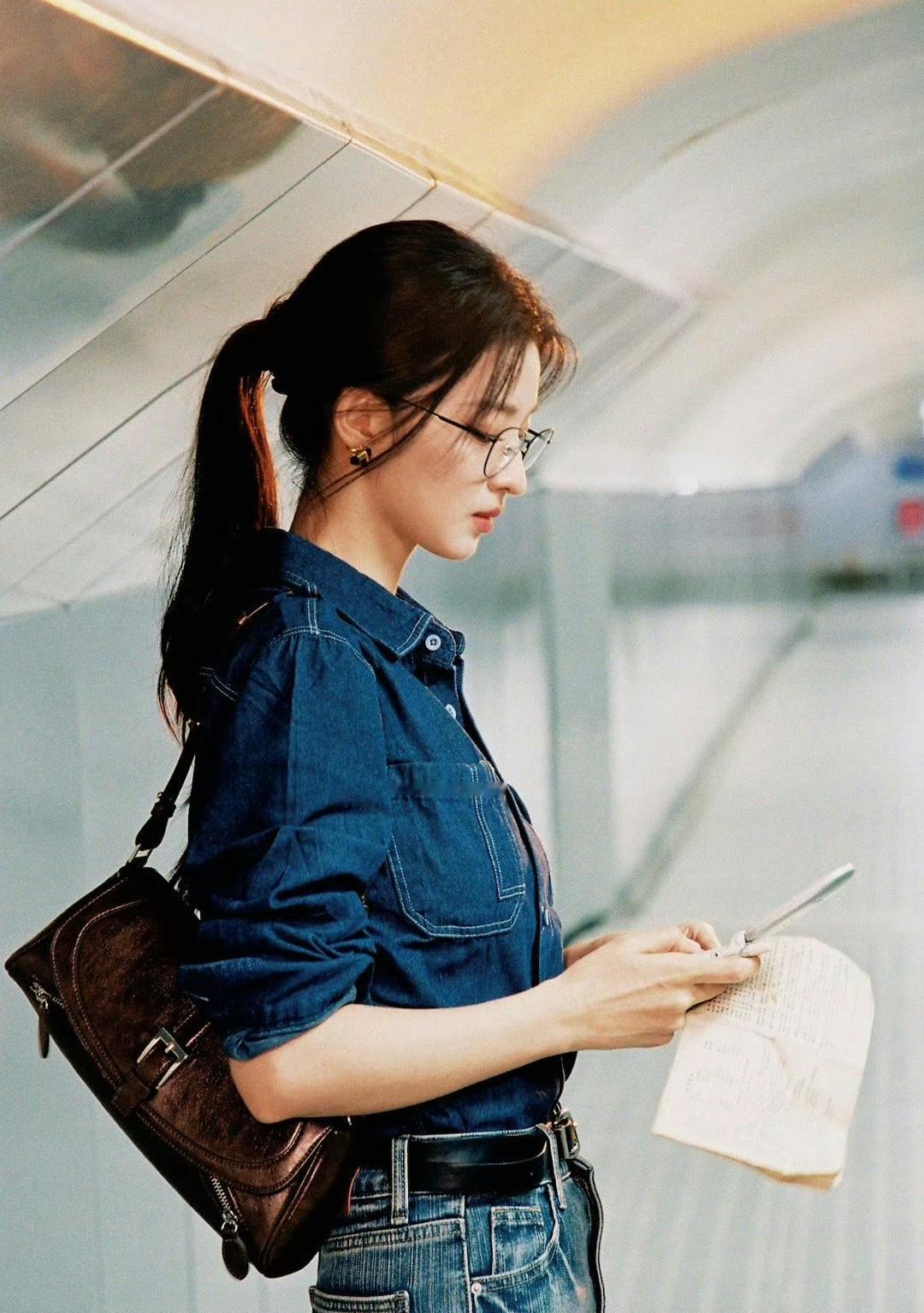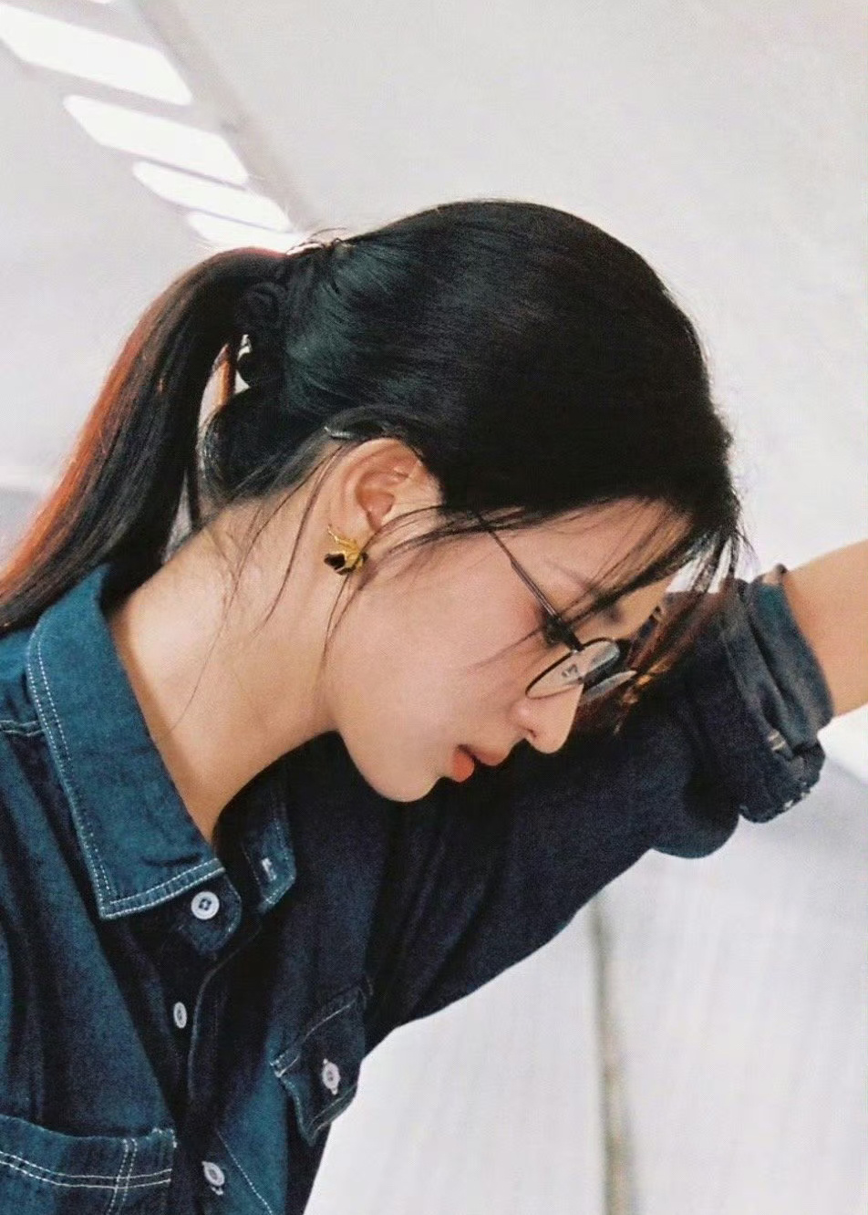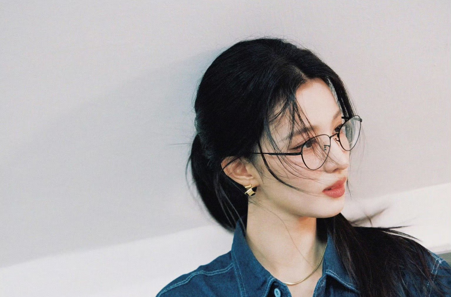 王楚然单马尾戴眼镜造型,冷艳高智御姐感!!