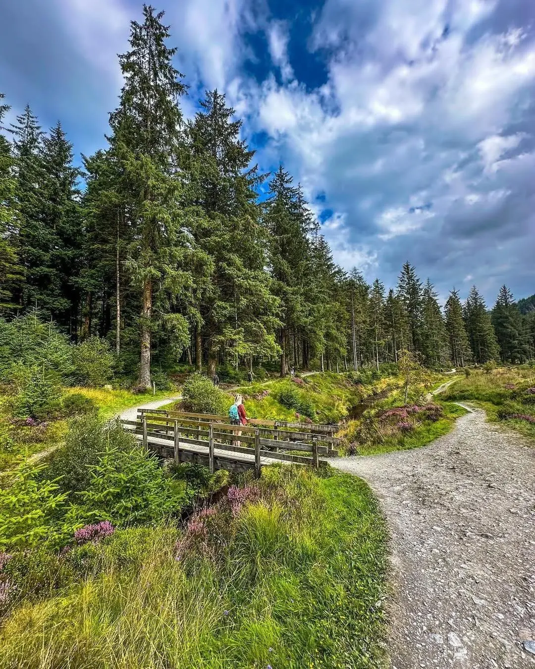 分享下威尔士超小众但宝藏绝美的Hafren Forest 徒步/骑行路线📒 🗺️路线推荐 【赛文断颈瀑布路线】徒步&山地骑行的loop路线 🚶‍♀️路线:Severn-Break-its-Neck Trail ✅路线全长:约4.5km单程 ✅时长:徒步约2h / 骑行约1h ✅难度:⭐(新手友好 ✅起点:Hafren Forest Parking Lot ✅路线特色:木板桥+苔藓林+潺潺溪流+断颈瀑布 🚗Hafren Forest怎么去? 📍 最近城市:Aberystwyth(阿贝里斯特威斯) or Shrewsbury(什鲁斯伯里) 🇬🇧从伦敦出发 🚆火车 从伦敦Euston站 ➡️ 先坐火车到 Shrewsbury(约2.5h) 然后转车至 Caersws 小镇(约1h) 最后可叫出租车/巴士前往Hafren Forest停车场(约20min) 🚗 自驾: 从伦敦出发走M40高速,全程约4.5h 🌟沿途亮点 1️⃣Severn-Break-its-Neck Waterfall 断颈瀑布!听起来超恐怖其实是威尔士语“Rhaeadr Blaen y Severn”的翻译😂很震撼的瀑布 2️⃣赛文河源头 River Severn Source 英国蕞长的河流起点就在这座森林里,有一个指示牌必拍照打卡 3️⃣Hafren森林 巨大的松树林,空气清新天然氧吧!随手拍都是清冷的英式山林氛围感 4️⃣野生动物出没 有机会看到松鼠、狐狸、鹿群 🏠住宿推荐 建议来Hafren Fores徒步的朋友在Aberystwyth住一晚,很美的海滨城市,推荐一家不错的Airbnb 💙房源名:Beautiful 2 bed apartment in heart of Aberystwyth 💐民宿亮点 ▪️地理位置很好位于Aberystwyth的市中心🚶‍♀️步行约2min就能到海边,距离老学院、城堡和教堂都很近! ▪️提供免费车位和一切生活所需用品 ▪️周边有很多餐厅、咖啡店和超市 ▪️大约200镑一晚(淡旺季可能会波动)民宿有2间卧室,2个独立卫浴,可住5人 📷图片来源于网络及Airbnb民宿图片,图侵删