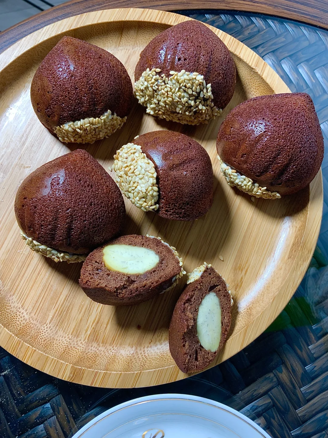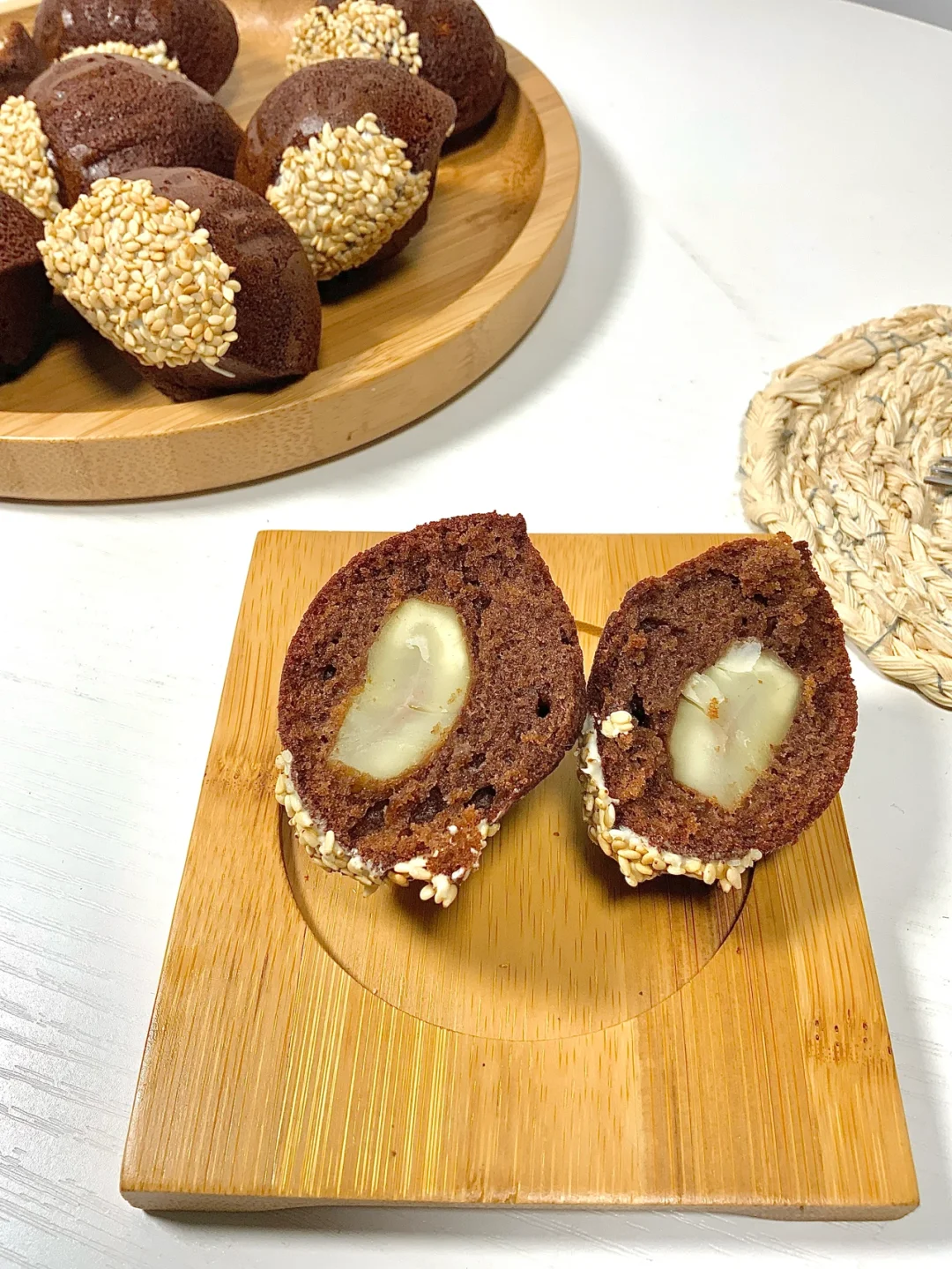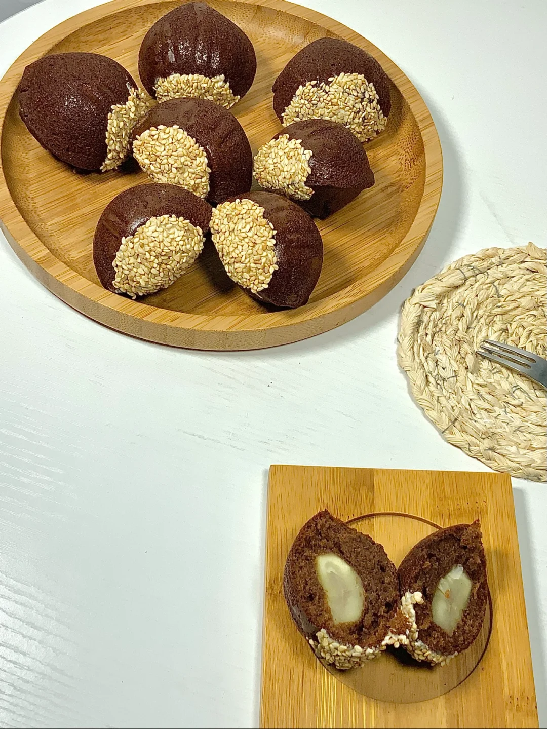 搅一搅就完成🥺一口一个秋天🍂里面一大颗栗子🌰可可味十足胖胖鼓鼓的好可爱🥺 - 食材篇🥬: 鸡蛋两个、黄油70g、白砂糖65g、 低粉80g、泡打粉4g、可可粉5g、蜂蜜10g 步骤篇🥣: 1、碗中放入两个鸡蛋、白砂糖65g、低粉80g、泡打粉4g混合均匀,在放入10g蜂蜜和融化的黄油搅拌均匀 2、模具中刷油,挤入一半蛋糕液放入一个栗子,再铺上一层蛋糕液至八分满 3、蒸烤箱170度烤20分钟✅ - 超级简单好吃的栗子🌰玛德琳完成了✅趁热就吃了两个🥺可可味十足😋蒸烤箱更适合做不同类型的美食哈🥳