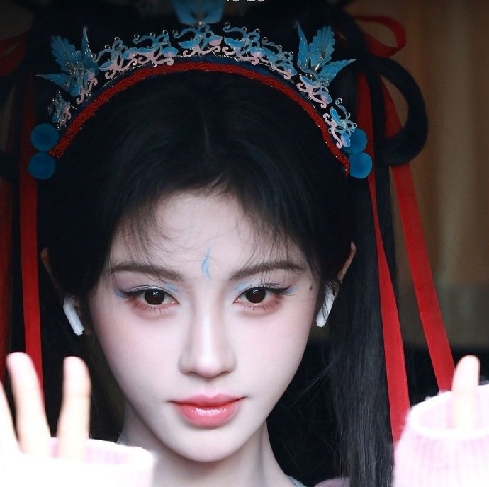 鞠婧祎阿黛新造型出妆,鞠婧祎蓝色花钿戏曲妆,好生美貌的小鞠上线,每一次出妆都很惊