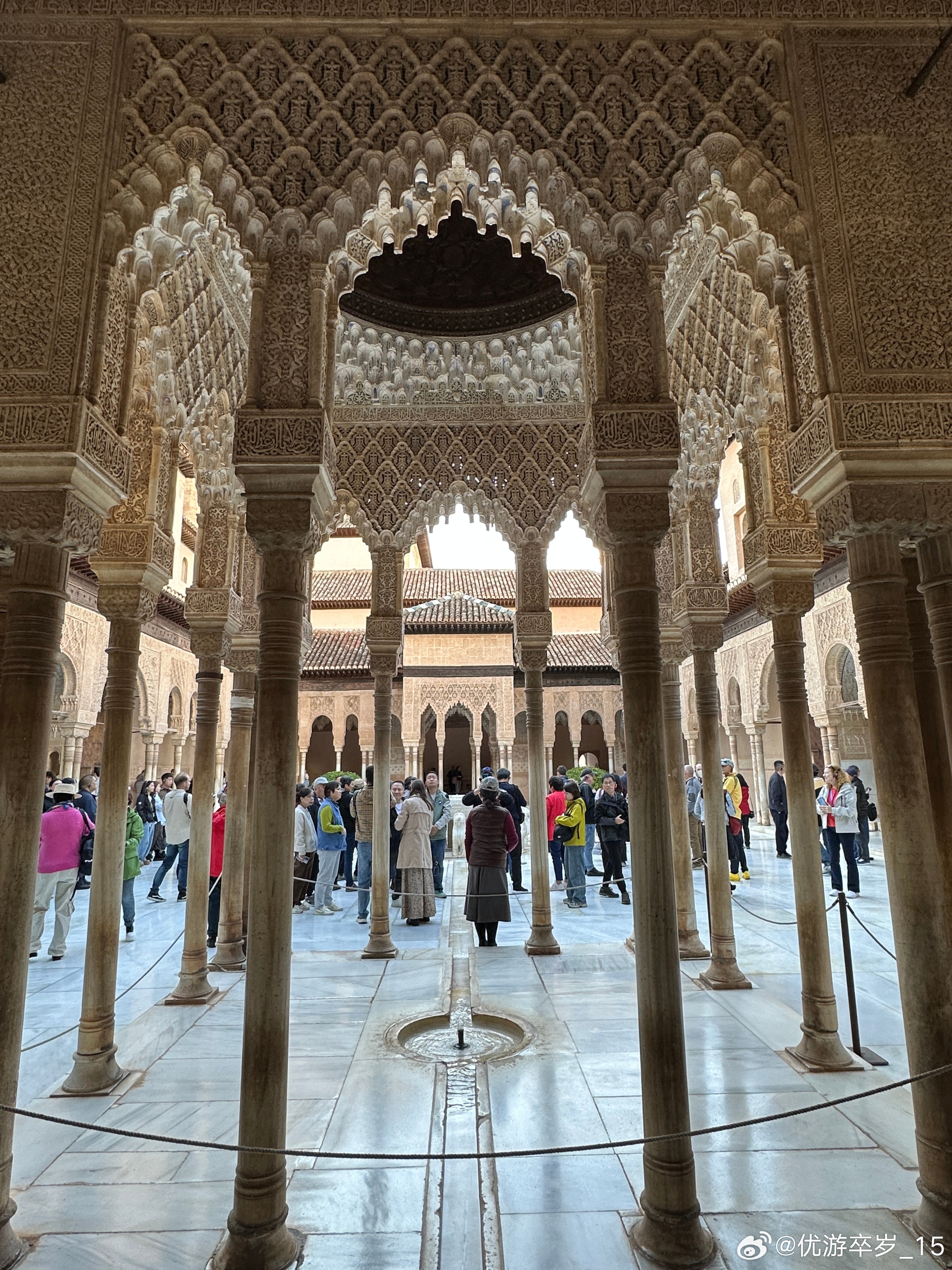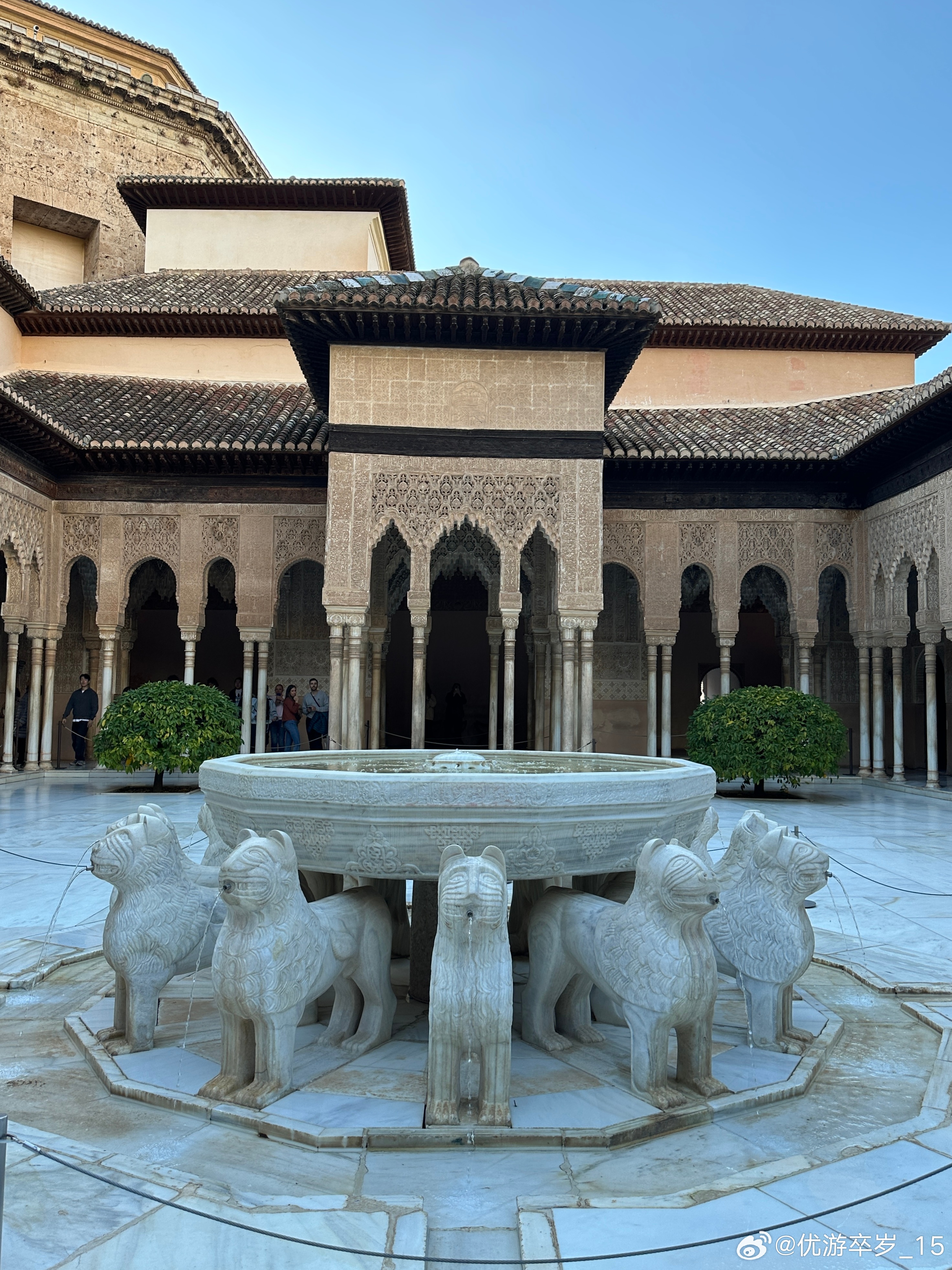 【世界遗产】阿尔罕布拉宫静卧在西班牙格拉纳达山岗,是摩尔人在伊比利亚的建筑巅峰。白墙映着雕花拱廊,庭院里流水潺潺,马赛克瓷砖缀满几何纹样,伊斯兰美学的空灵与地中海的明媚相融。午后阳光穿过格窗,在石板上投下斑驳光影,每一处细节都藏着"天园"的诗意,成为跨越千年的文明瑰宝。
