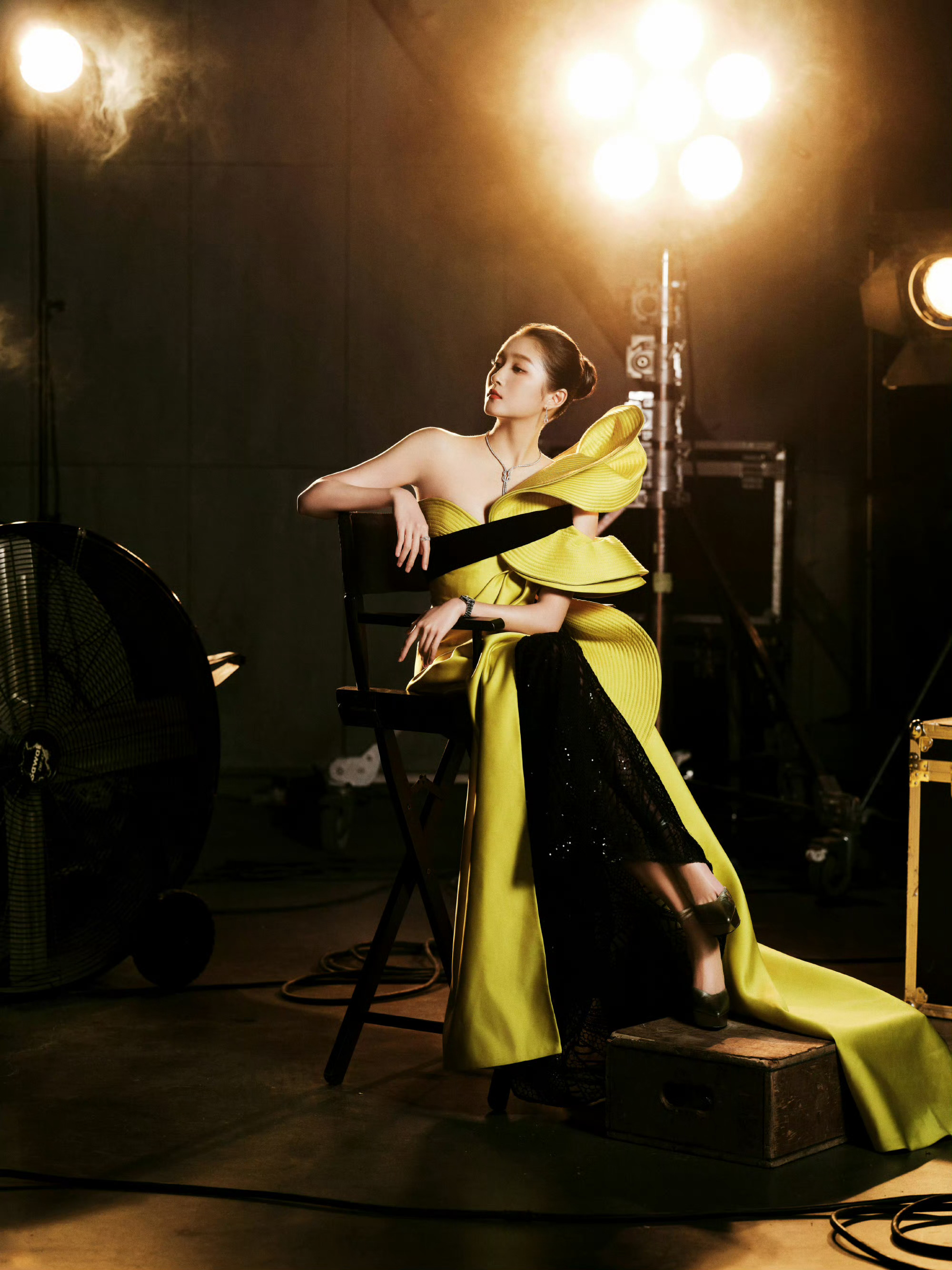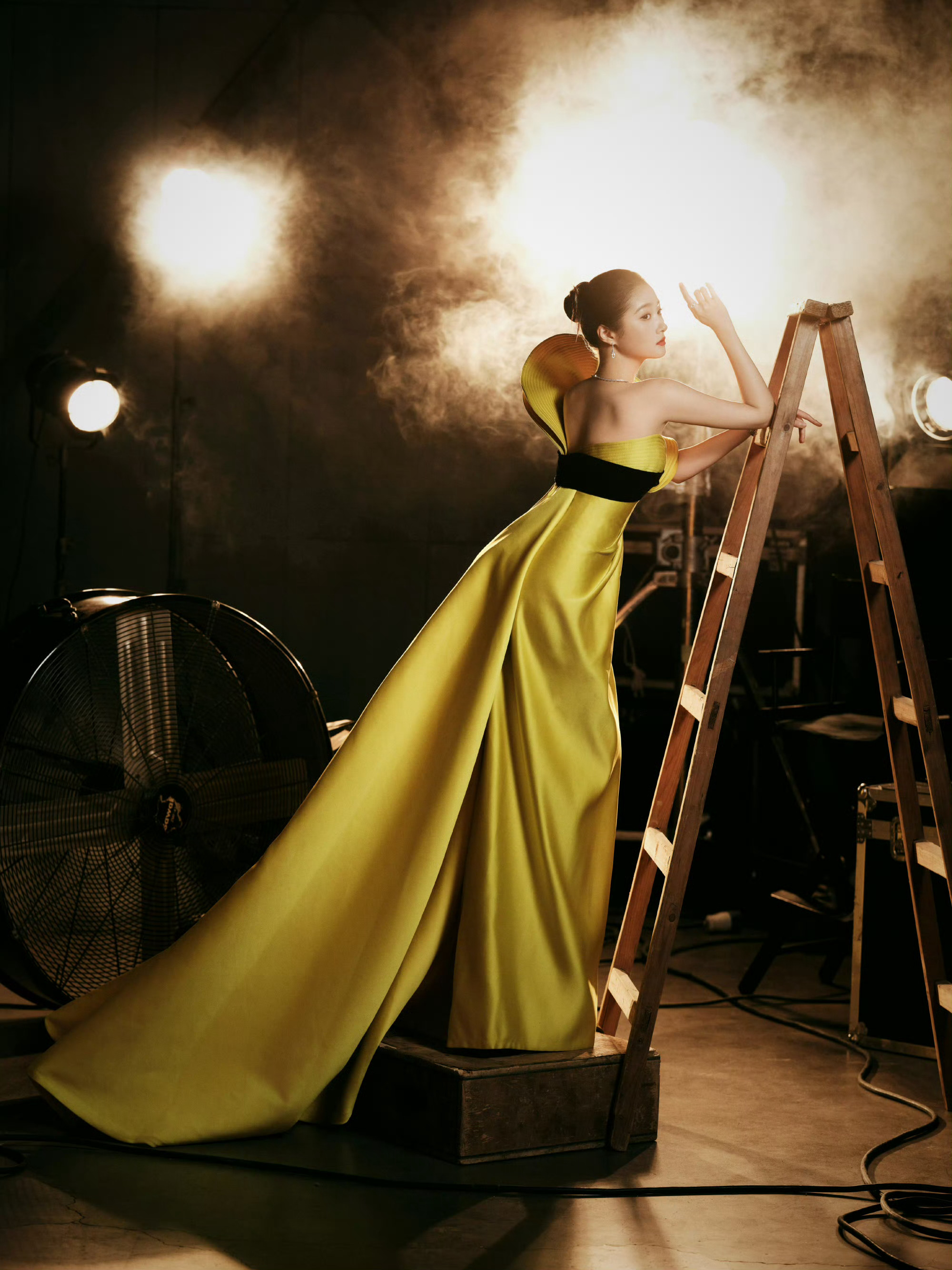 关晓彤今天金鸡奖这个造型挺好看的。明黄色的裙子很衬她,显得皮肤特别白。发型梳得一
