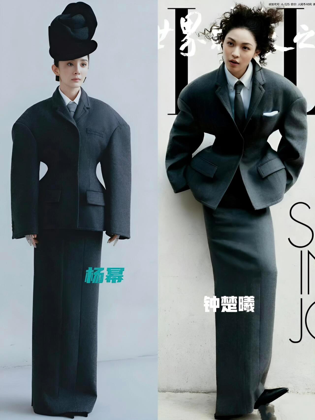 我去!杨幂钟楚曦顶刊撞衫同件高定这衣服非要选一个胜者吗?