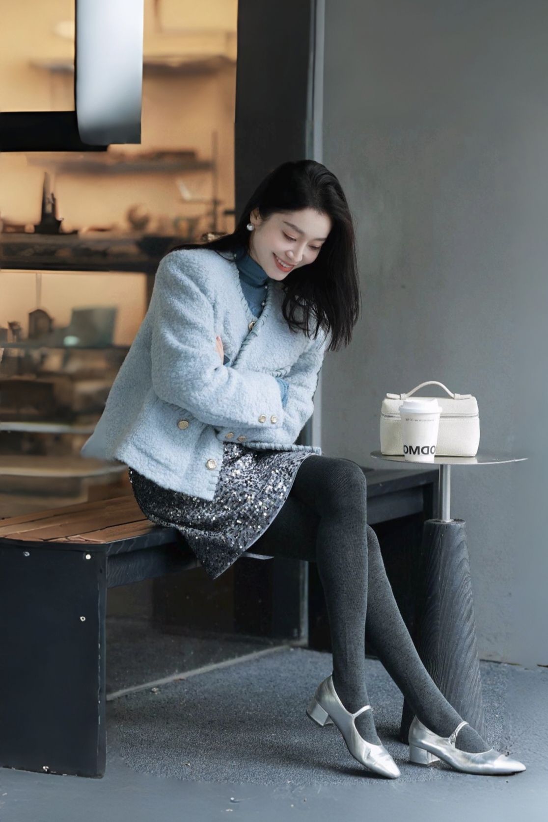温柔冬日穿搭,毛绒外套+长直发,自拍时刻📸✨