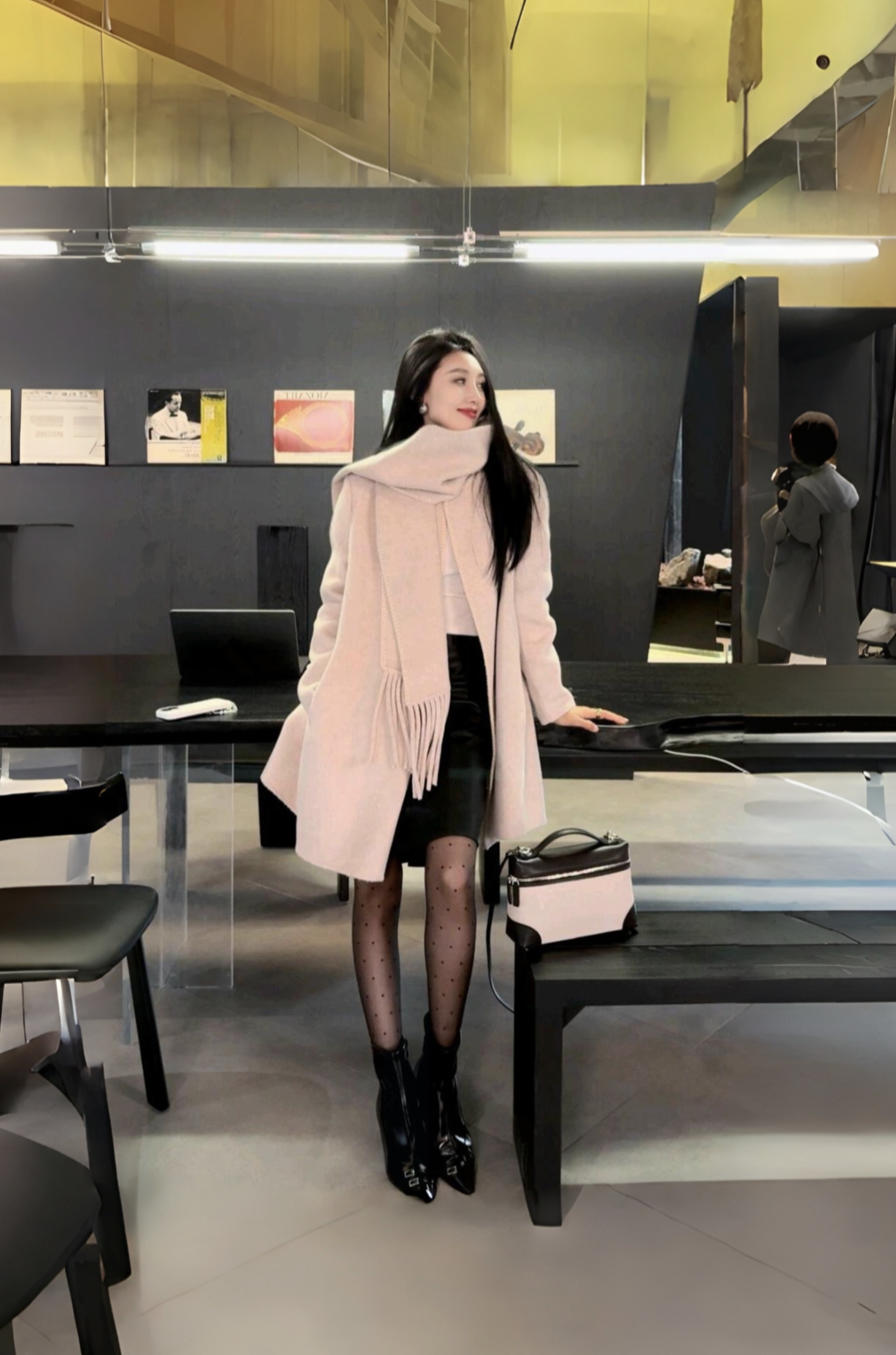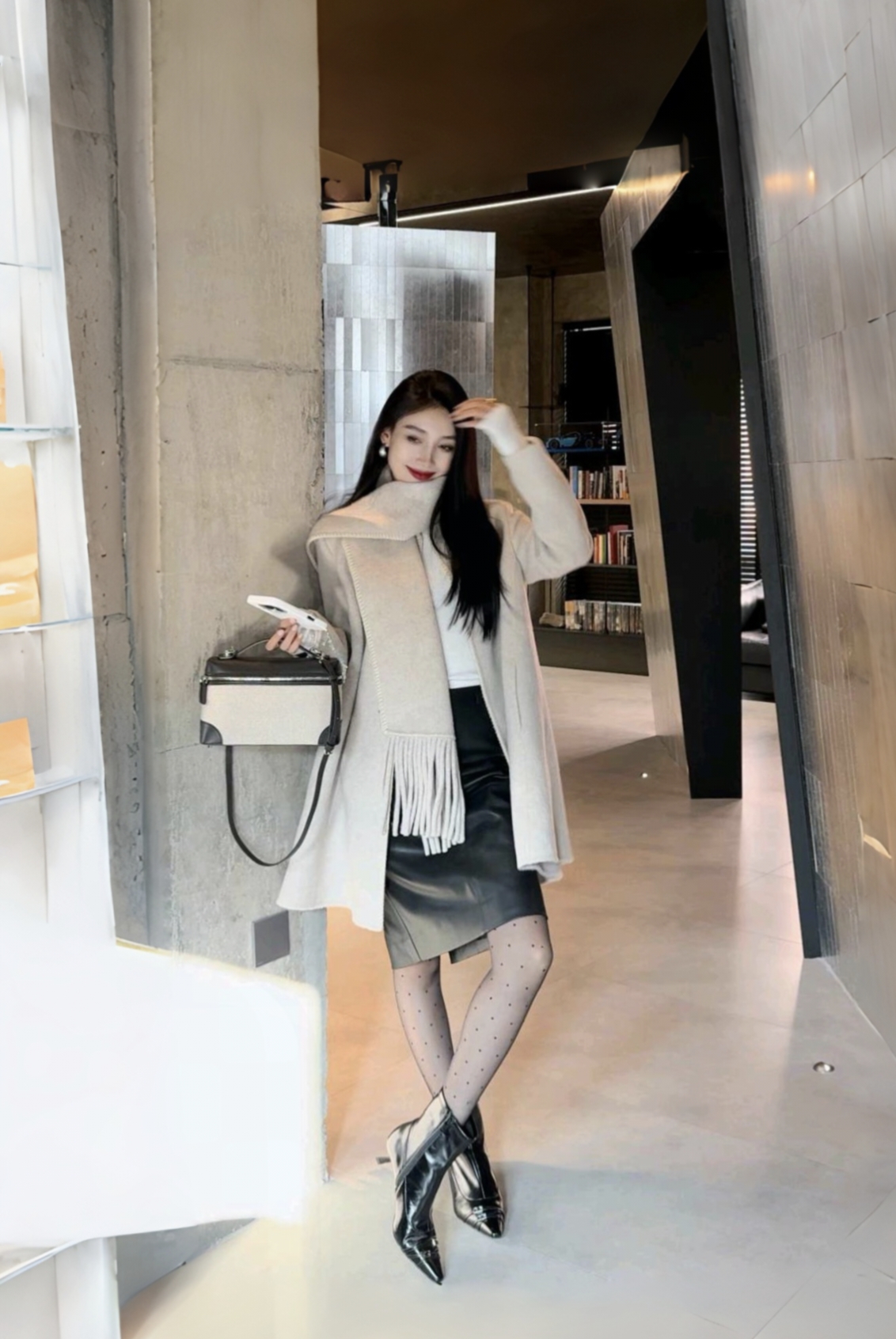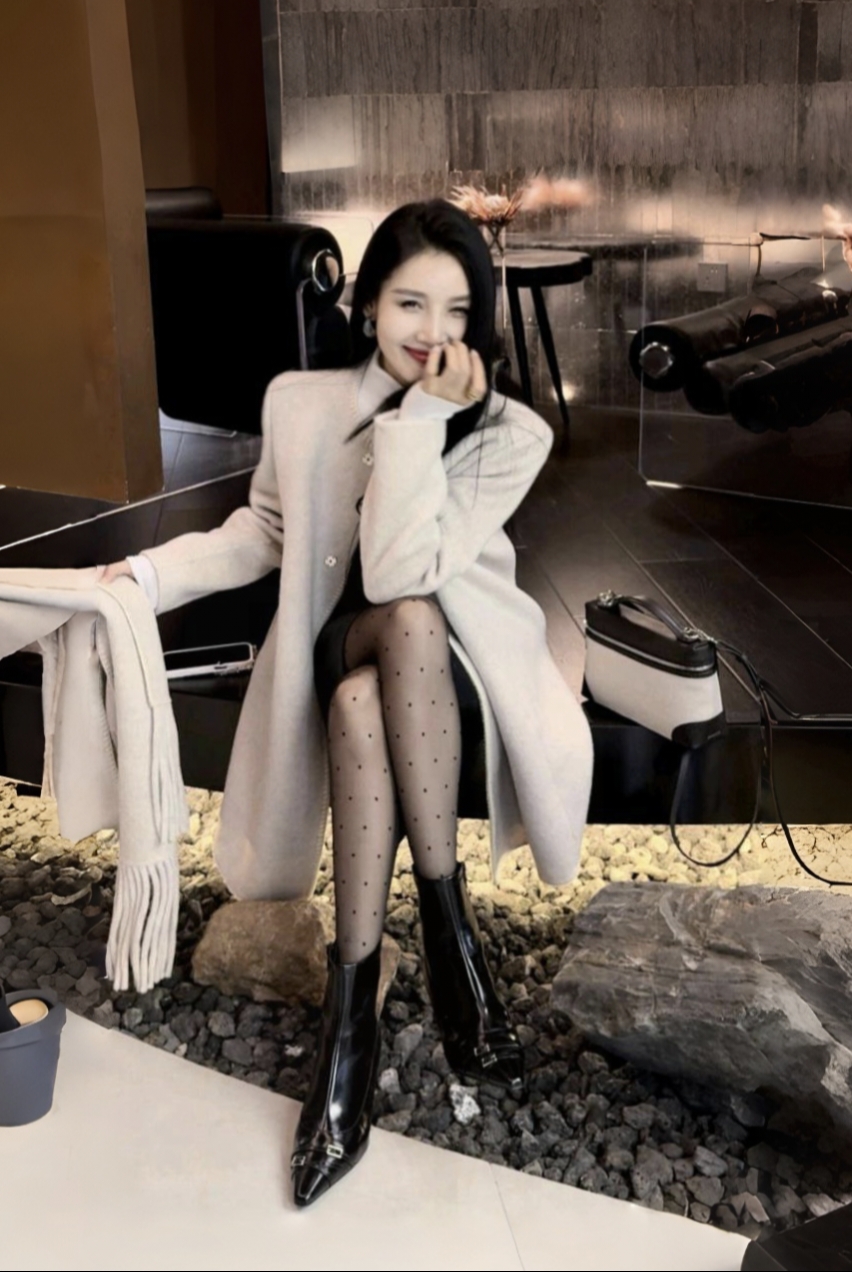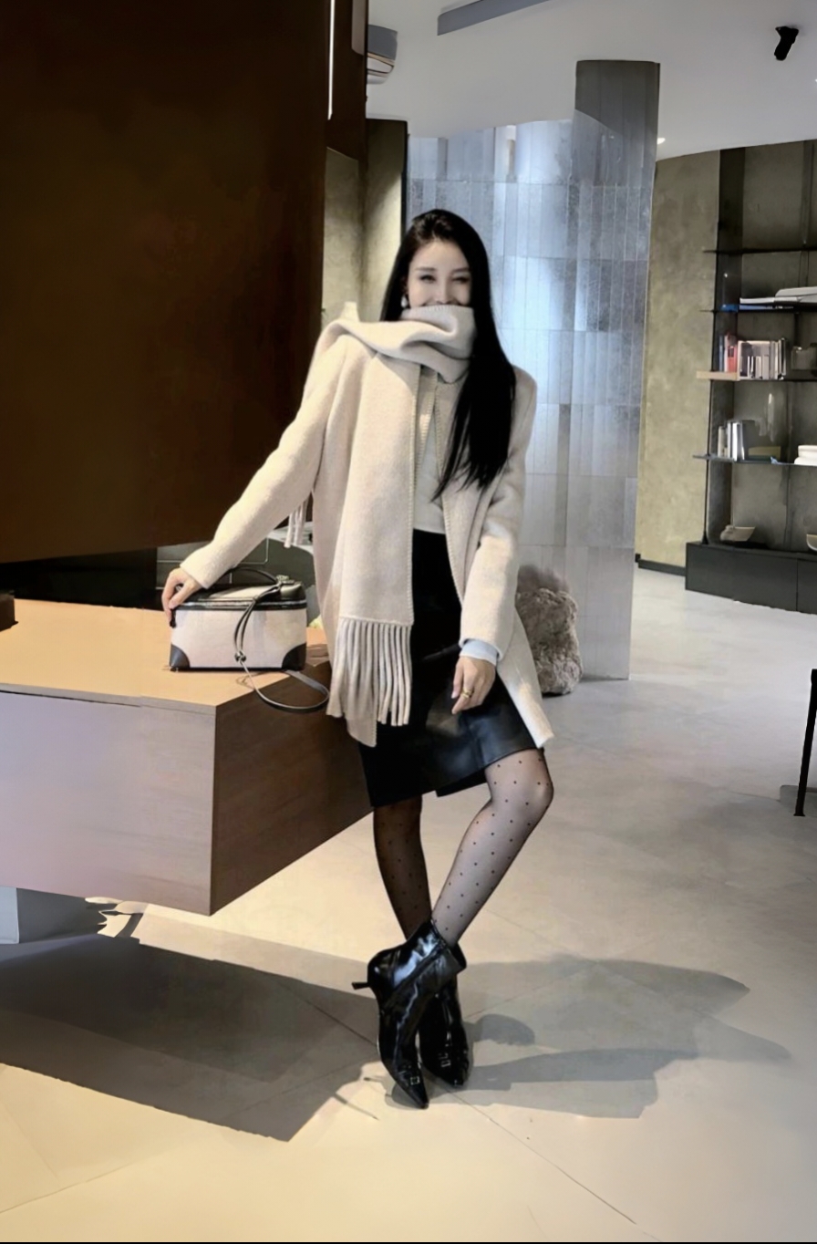 秋冬棕色大衣配厚黑加围巾 简直就是气质女神绝绝子 即保暖又靓丽又显气质又身材