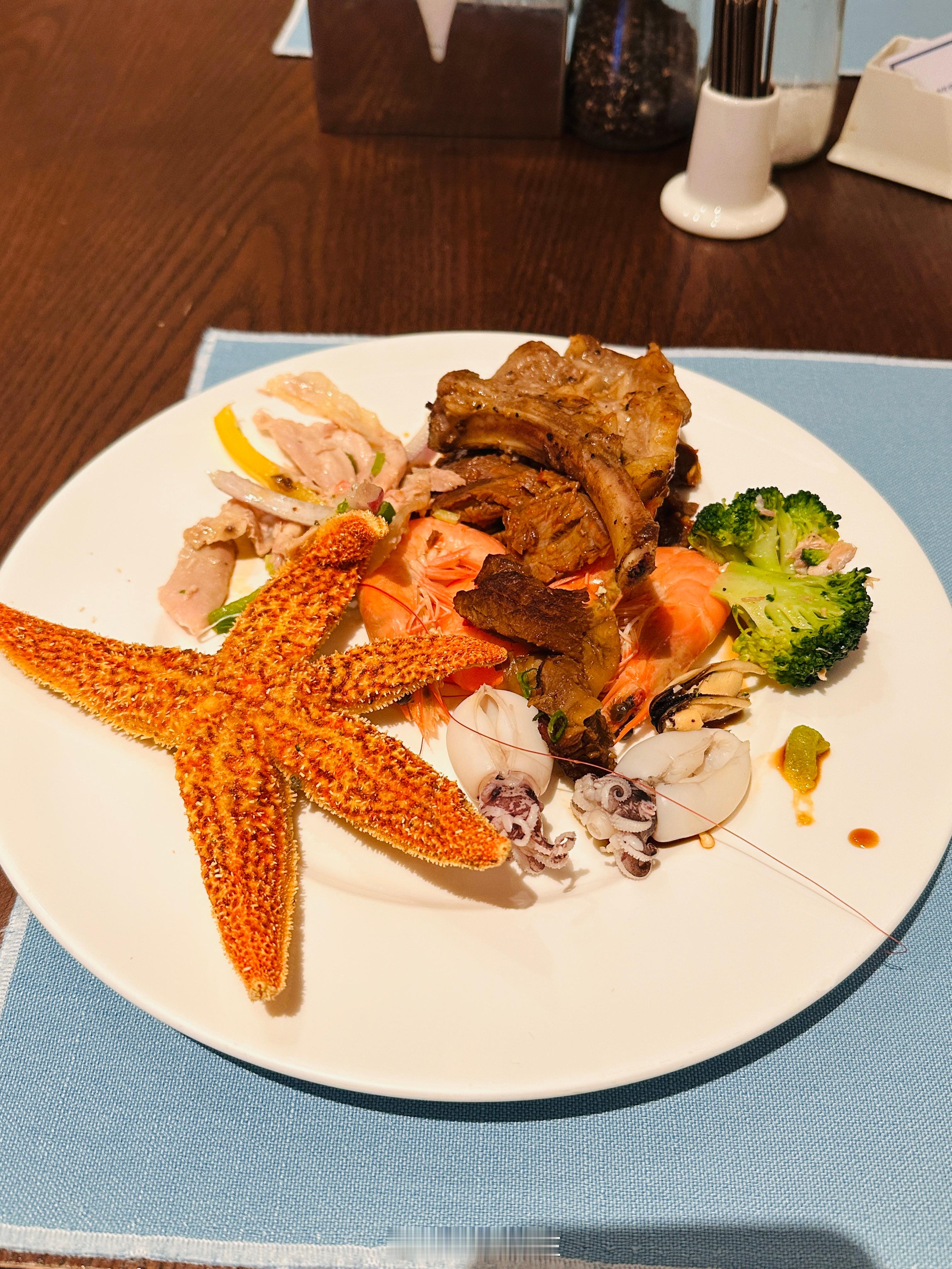 今日入住广州天河希尔顿酒店中午飞机上吃了一个面包,晚餐大快朵颐一翻,最后是“喝饱的”
