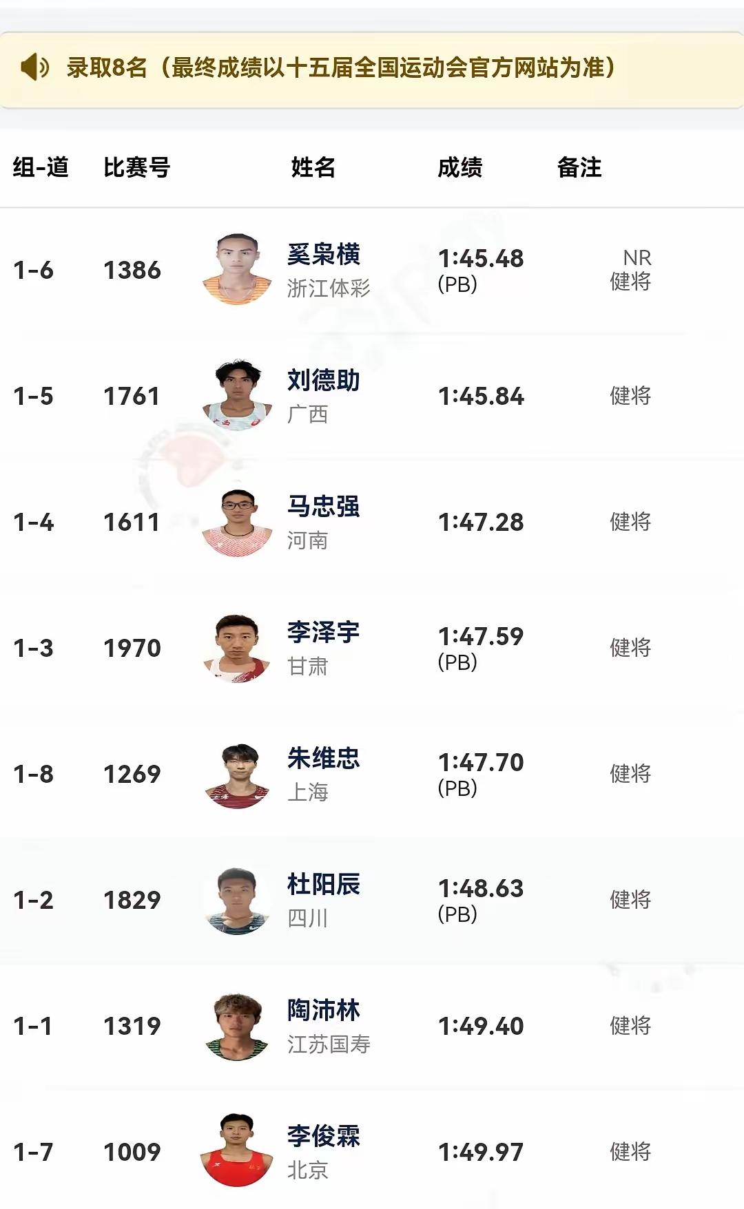 全运会浙江田径成绩真好。 全运会田径800米的奚枭雄,夺金创新的全国纪录, 16