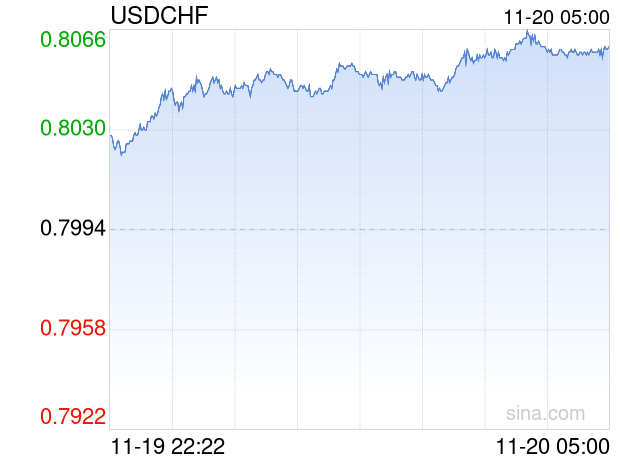 新浪外汇消息2025年11月20日,截至05时00分,外汇市场上美元兑瑞士法郎汇率突破1美元兑换0.8059瑞士法郎。涨幅为0.8131%