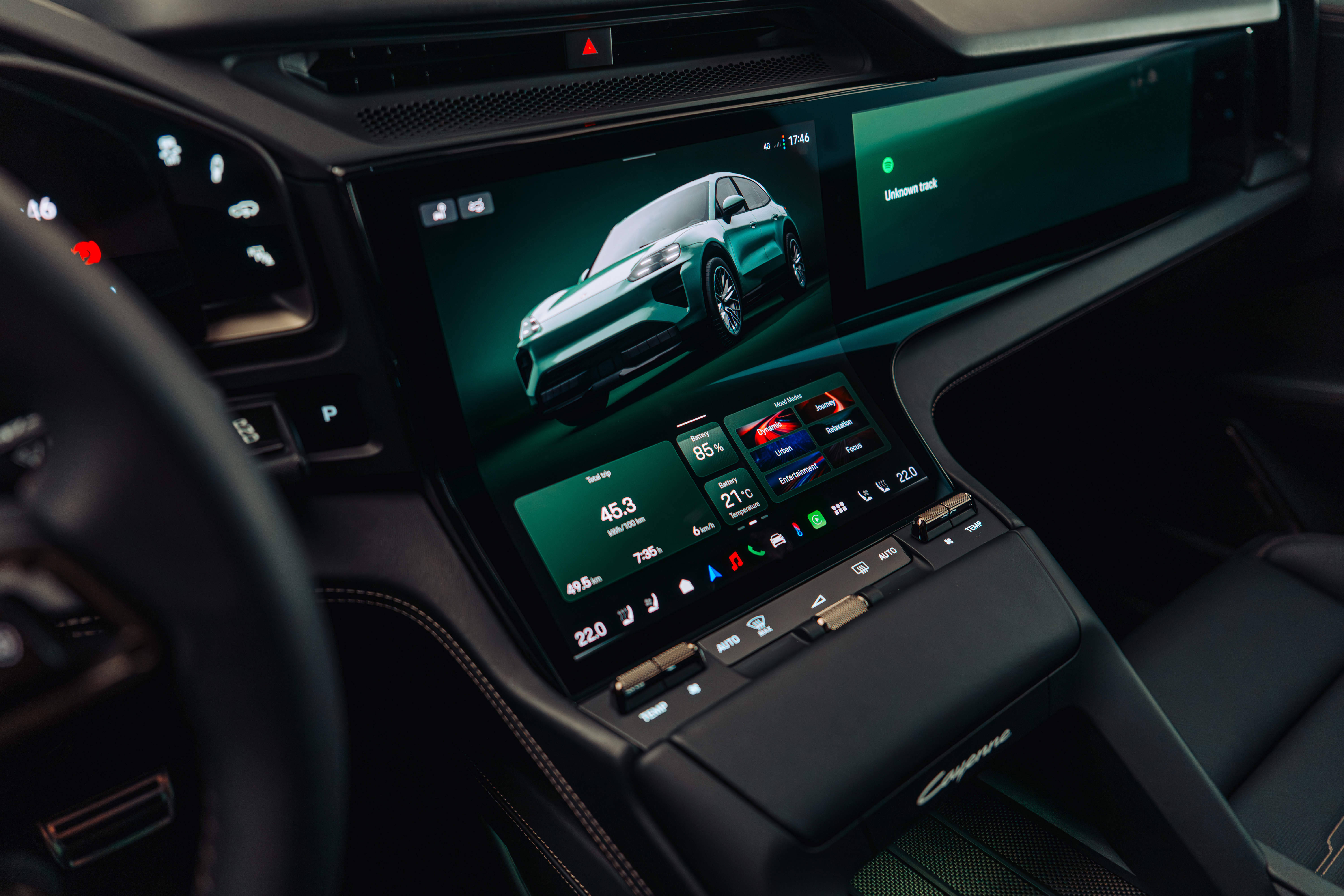 Porsche Cayenne Electric 保时捷纯电版卡宴这个内饰还是很有设计感的,折叠屏区分了显示区和控制区,还配有实体按键,看座椅明显不是舒适路线,保时捷肯定还是运动范儿为主。分辨率:6000