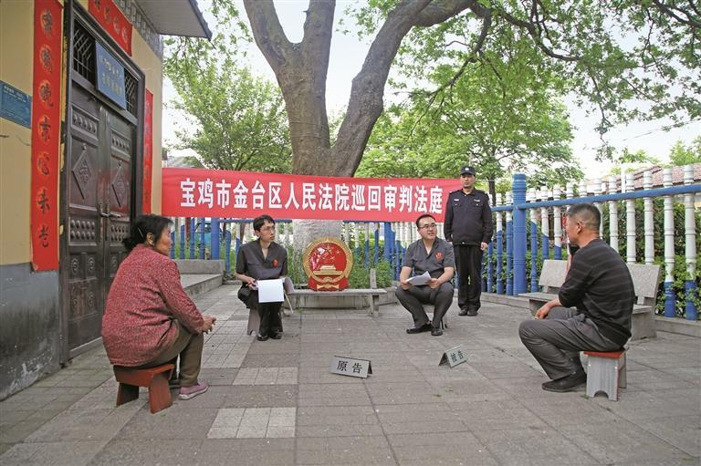 宝鸡市金台区法院法官把庭审现场搬到了村委会院子(资料照片)。受访者供图