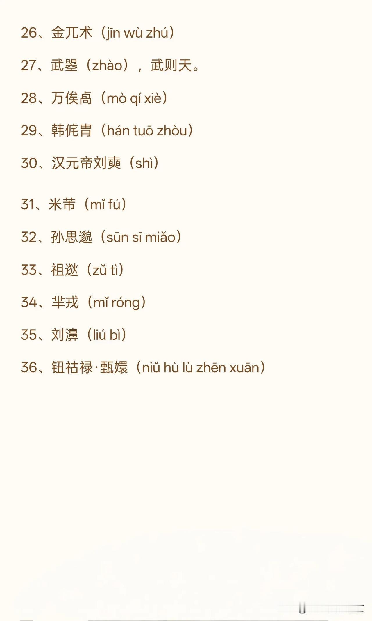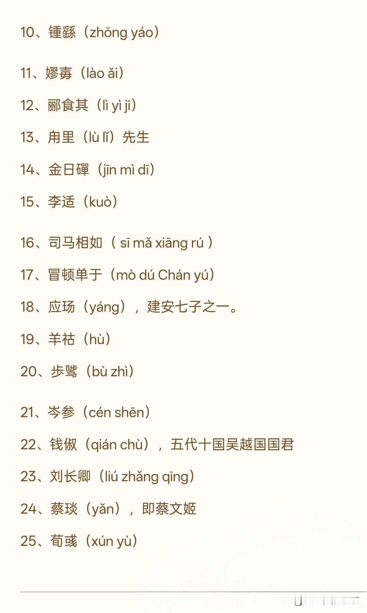 一读就错的历史人名 郦食其(li yi ji) 米芾(mi fu) 韩侂胄(han tuo zhou) 万俟卨(mo qi xie) 颛顼(zhuan xu) 皋陶(gao yao) 妺喜(mo xi) 刘濞(liu bi) 甪里(lu li)先生 金日䃅(jin mi di) 荀彧(xun yu) ... 这些名字一看很熟悉,但一读就错~ 赶紧收藏起来,留着给孩子学习用