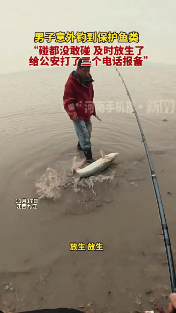 江西,男子和朋友凌晨4点摸黑去江边钓鱼,蹲了几个小时,终于上了一条大鱼,结果拉近一看,直接吓出一身冷汗,当场手忙脚乱放生,还连打3个110确认。 原来当时男子越拉越觉得不对,看见有黑色的脊背,拉到岸边看清品种,以为是中华鲟,吓得都不敢碰,用脚轻轻把鱼推到浅水区,小心翼翼地取下鱼钩,把它放回江里,还特意录了个放生视频留凭证。 之后男子又掏出手机,接连打了3个电话,跟警察叔叔报备情况。 警方很快回应了,说误钓保护动物后及时放生,是不用担责任的。而且经确认,这条鱼不是中华鲟,而是保护等级更高的国家一级重点保护野生动物长江鲟! 网友们纷纷调侃:“长江鲟:不是你放了我,是我放了你啊,小伙子。”​“长得越怪,判得越快,不认识的鱼还是赶紧放了吧” 看得出小伙有基本的法律意识和保护动物的常识,知道鲟鱼是珍稀物种,及时放生避免了伤害,也能感受到他的谨慎,怕自己处理不当,主动联系警方确认,完全是是教科书级别的应对。 现在很多人钓鱼就是图个乐趣,享受甩竿、等鱼上钩的惬意,更是亲近自然的松弛感。 提醒各位钓友们,钓得开心的前提是护好生态,鲟类大多都是保护动物,如果不小心误钓了,一定要主动放生,及时跟有关部门报备,不要私自处置。