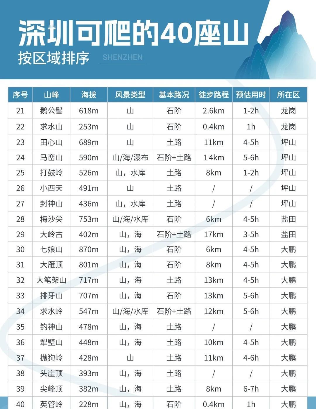 🏔️深圳可爬的40座山峰 秋冬徒步必码! 🌟 难得收集这么全,先码住! 秋冬