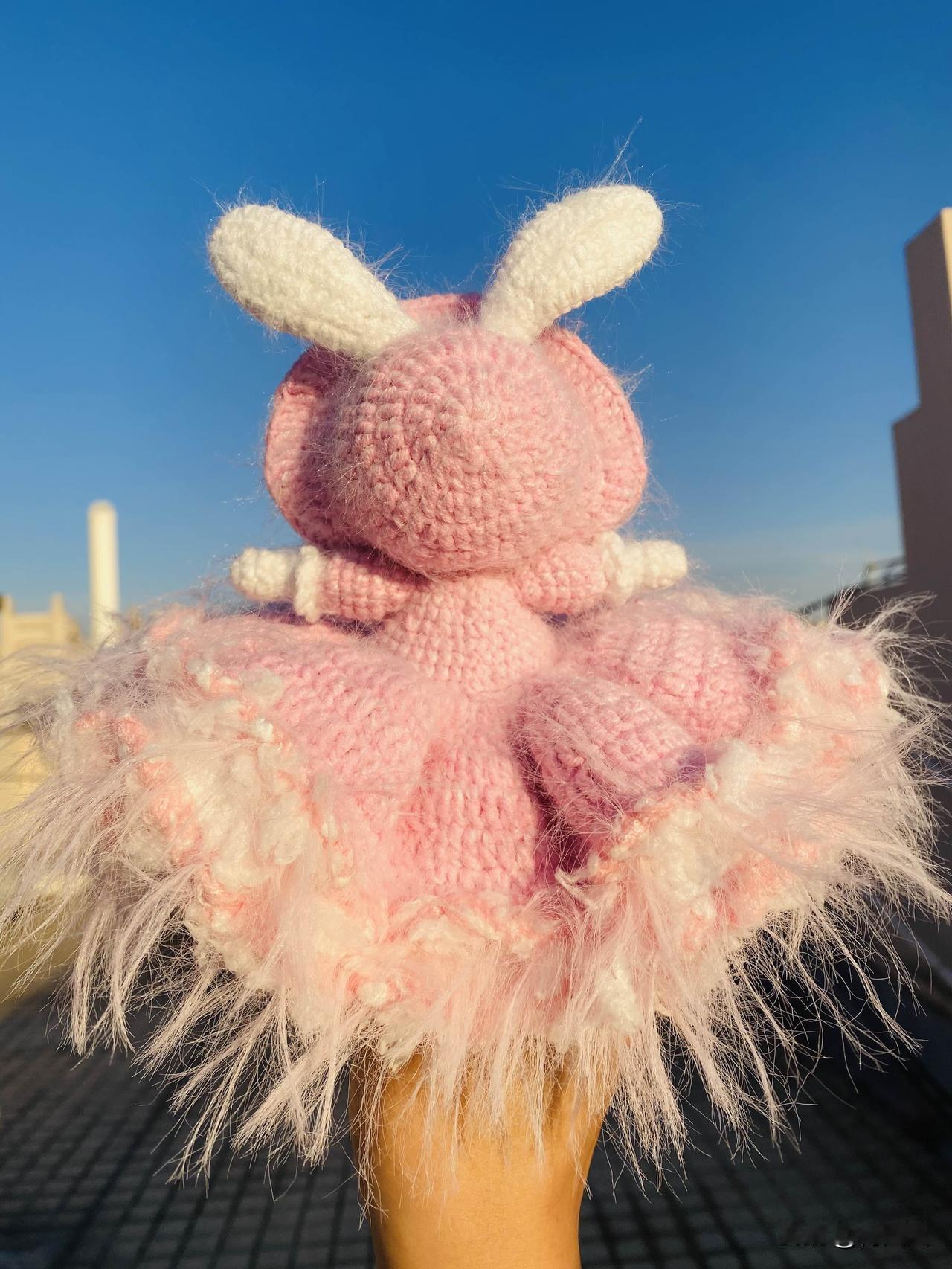 今天来晒晒这两天的钩织作品,纯手工哦~(骄傲脸) 我自己钩的,用毛线钩出来的,自己拿钩针钩出来的。心里满满的成就感,很自豪😎 这只兔兔真是太可爱了,粉嫩嫩的颜色,肉嘟嘟的脸,真是太可爱了。 才钩完我宝宝看见了就特别喜欢,直接成了她的收藏了,哈哈哈哈。 这几年毛线是越来越多,蕾丝线、马海毛、羊毛线、萌四、雪妃尔五股、小糯米、仿貂绒……五颜六色的线。 真得很神奇,看着很平常的毛线,却能在钩针编织下,在手上勾绘出不同的样子,显得又不平常。 加油,后期还会继续钩织别的作品[可爱][可爱]